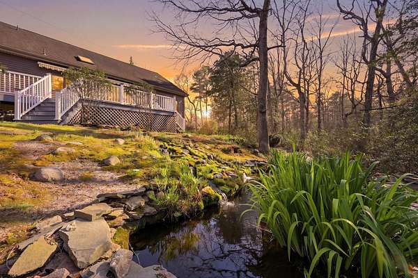 OPEN HOUSE SAT. 5/2 & SUN. 5/3 12pm-2pm! RIVER ACCESS! Your Private Sanctuary Has Arrived! Nestled on over 15 acres of Peaceful Seclusion in Estell Manor, this Custom 3-Bedroom, 2.5-Bath Expansive Ranch offers the perfect blend of Modern Comfort and Tranquil Charm, set in a high and dry location! From the moment you arrive, the inviting front porch sets the tone for the Warmth and Serenity found throughout the Home. Step inside to a Welcoming Living Room with Soaring Ceilings and a Cozy wood-burning fireplace, creating the perfect space to gather and unwind. The Open Layout flows seamlessly into the heart of the home—a thoughtfully designed Kitchen featuring beautiful Wood Cabinetry, abundant counterspace, and an oversized pantry to meet all your storage needs. Whether enjoying everyday meals in the Kitchen area or hosting memorable holiday gatherings in the Dining Room, this home offers space for every occasion. The spacious Primary Suite is a true retreat, complete with Extra-Large Closets and a relaxing en suite bath with a soaking tub. Two generously sized additional bedrooms share a convenient connecting full bath, offering comfort and privacy for family or guests. The basement is the full length of the home and features Bilco doors for added convenience. The Attic has 14ft+ ceilings & space for possible expansion. Step outside through sliders from the kitchen and dining area onto the oversized Trex deck, complete with a retractable electric awning—perfect for entertaining or simply enjoying the peaceful surroundings. From there, follow the gentle sounds of nature to a charming Stream and Koi Pond, or take a scenic walk down the path to South River. Here, you can relax, barbecue, swim, kayak to Atlantic County Park, or simply take in the breathtaking sunsets. Surrounded by mature landscaping, upgraded hardscaping, and abundant wildlife, this property feels like a private escape yet remains just a short 20 minute drive to the shore via Route 50. Come experience the beauty, peace, and lifestyle this exceptional property has to offer. Love where you live—immersed in nature at its finest!