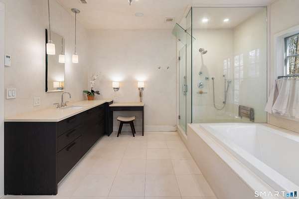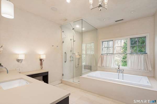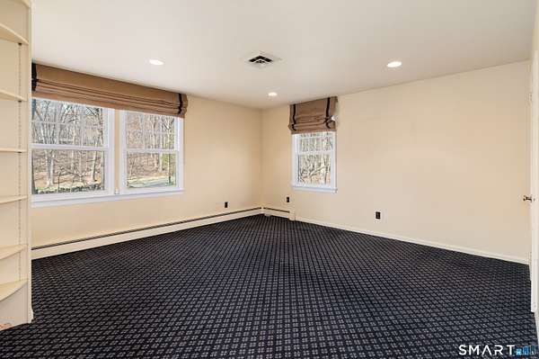 Discover this distinctive Colonial, gracefully positioned on a quiet cul-de-sac with 2 acres of stunning natural beauty. From the moment you arrive, timeless elegance and thoughtful design welcome you home. Sun-filled grand rooms flow seamlessly throughout. The impressive living room captivates with a fireplace, gleaming hardwood floors, and a wall of windows. The gourmet kitchen is a true showpiece - granite counters, premium stainless appliances, and an oversized island perfect for entertaining. Step through French doors to your private deck and sparkling heated in-ground pool - outdoor living at its absolute finest. The primary suite is a sanctuary of its own - a private wing complete with a fireplace, personal gym, steam shower, jetted tub, and two oversized walk-in closets. Four generous upstairs bedrooms, including an en-suite second primary, accommodate family and guests beautifully. A main-level office and two powder rooms add everyday convenience. The finished lower level offers a mud room playroom, cedar closet, and exceptional storage - ideal for hobbies or a private workspace. A whole-house generator and EV charging hookup deliver the ultimate in modern luxury and peace of mind. Exceptional space. Exquisite details. Extraordinary value. This is the one you've been waiting for.