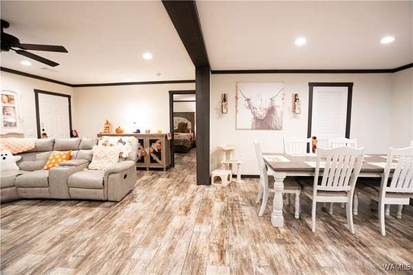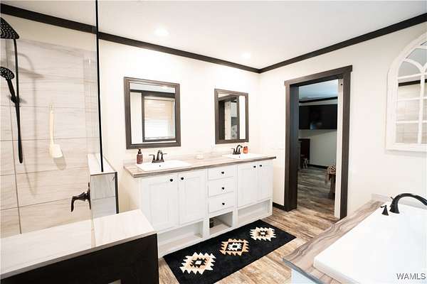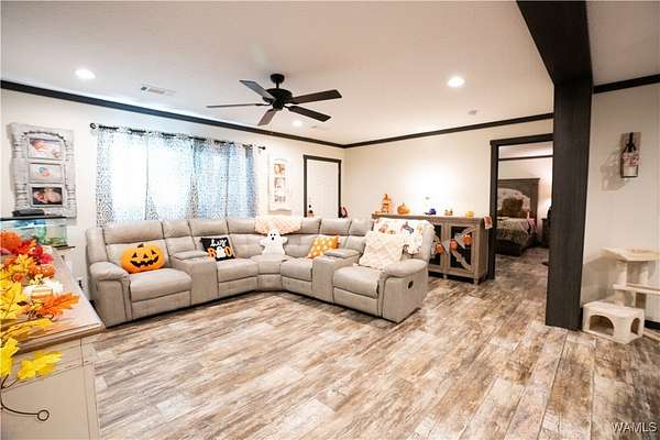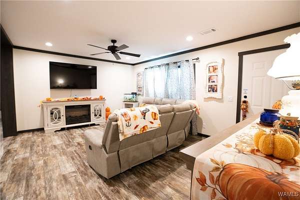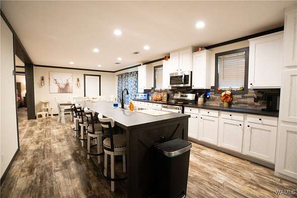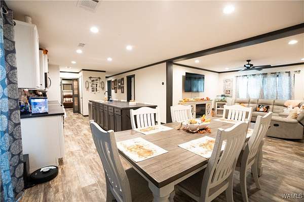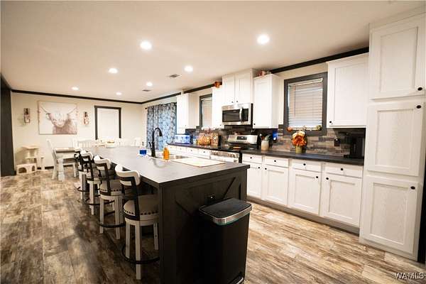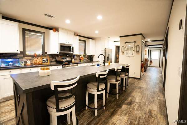Looking for lots of space and a place to call your own? This 2024 model 4 bedroom, 3 full bathroom manufactured home sits on 3+/- acres of land which is plenty of room for pets to roam and your family to play. Inside you will find the open concept living room and kitchen with a dining area and a eat at bar in the kitchen. The home also has a large laundry room as well. In master bathroom you will find double vanities and a huge walk in shower as well as a soaking tub. On the other end of the house is a seperate living area with an electric fireplace. The other 3 bedrooms and 2 bathrooms are on this end of house as well. Outside there is an outbuilding with a lean too perfect for parking under. You will not find another manufactured home this nice! Come see it while it last.