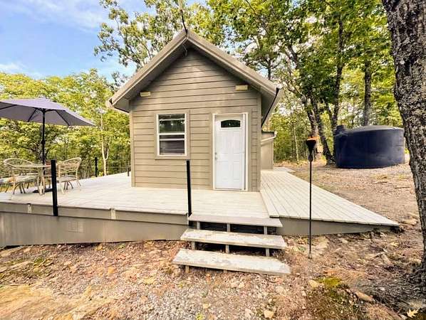 90 Acres with Off-Grid Cabin in the Ouachita Mountains - Talihina, OK Escape to peace and privacy on this 90-acre mountain retreat nestled in the beautiful Ouachita Mountains of Southeast Oklahoma. This secluded paradise features a 1-bedroom, 1-bath off-grid cabin powered by a solar system with six-battery storage, offering true self-sufficiency. The cabin includes a water-holding tank with pump, mini-split for heating and cooling, and a kitchenette with two-burner cooktop-everything you need for comfortable, sustainable living. Enjoy your morning coffee or evening sunset from the 10-foot wraparound deck overlooking mature hardwoods and the valley below. Storage container provides for solar panels set up and has plenty of storage space for any needed tools. It could also house atv or utv for the property. Outdoors, the property shines with over 2 miles of hiking and ATV trails, wet-weather streams, and unique rock outcroppings. It's a hunter's dream, teeming with whitetail deer, wild turkey, black bear, and small game. The mature, park-like woods have been well managed, providing easy walking and stunning year-round beauty. Though wonderfully private and remote, you're just 10 minutes from the town of Talihina-the gateway to the mountains. Whether you're seeking a weekend getaway, hunting retreat, or off-grid living experience, this property delivers mountain living at its finest. Breathe deep. Unwind, relax and Enjoy nature. Take life a little easier and a lot slower on this one-of-a-kind remote property in the mountains.
