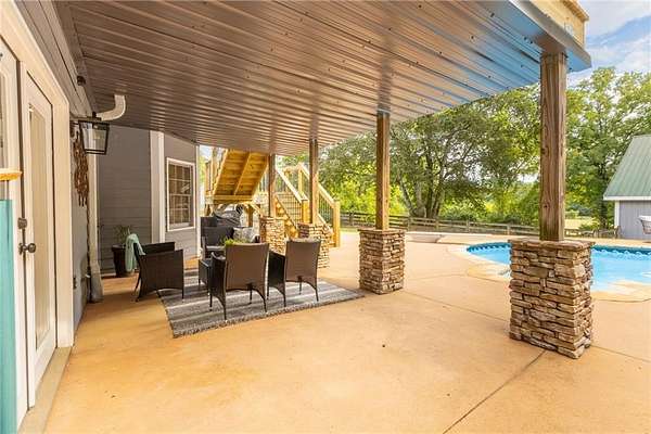 Nestled on 4.4 breathtaking acres, this home is a rare blend of luxury, lifestyle, and income-producing opportunity. Inside the main home, charm begins at the inviting front porch and continues into the foyer. A formal dining room sets the stage for lively holiday dinners and quiet Sunday suppers alike. The family room--warm, welcoming, and built for connection allows tons of natural light to float in from the windows. The remodeled kitchen boasts quartz countertops, high-end appliances, and a layout that makes cooking and conversation flow together effortlessly. The oversized owner's suite on the main floor is serene and restorative, offering a cozy library and a newly remodeled bathroom that feels spa-worthy. Upstairs, secondary bedrooms are spacious and bright. Don't miss the additional walk in closet at the end of the hall for holiday storage or wardrobe overflow. Your first of many income producing options- the finished basement...with its own bedroom, full bathroom, spacious living area, bonus room, extra storage, and brand-new waterproof flooring. This level is primed for an Airbnb or multi-generational living. Imagine earning income while guests enjoy their private retreat--or keeping it flexible as a home office, gym, or hobby space. Step outside and embrace the ultimate in outdoor living. Take a refreshing dip in your private pool, host unforgettable gatherings on the new deck with under-deck waterproofing, or grow your own bounty in raised garden beds. The property is a paradise for equestrians and homesteaders alike--featuring a two-stall horse barn with tack room, a round exercise pen, 12x12 workshop, fenced dog run and lush pastures ready for horses, goats, chickens, or more. Whether your vision includes boarding animals, running a small farm, or simply enjoying your own slice of country life, this land has the space--and the potential--to make it happen. Conveniently located just 2 miles from I-75, offering quick access to Atlanta and the airport, this property is also less than 20 minutes from downtown Cartersville. It's the peaceful life you've been craving but close enough for a last minute night on the town. A property that lives beautifully and works smart for you...come see the lifestyle you've been dreaming of. An additional 2.283 acres is for sale next door. Listed separately but can be combined. (84 Cline Smith Rd.)