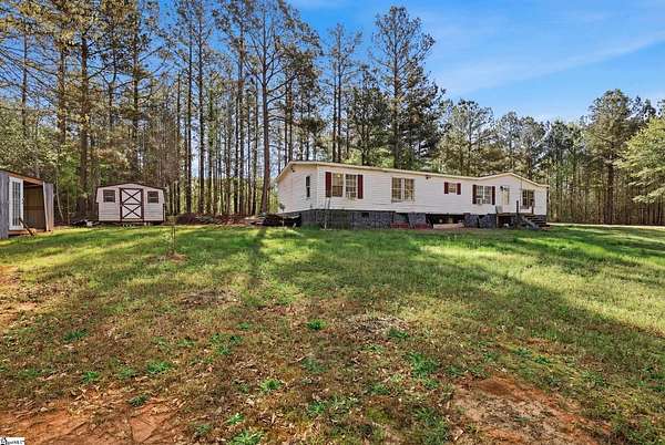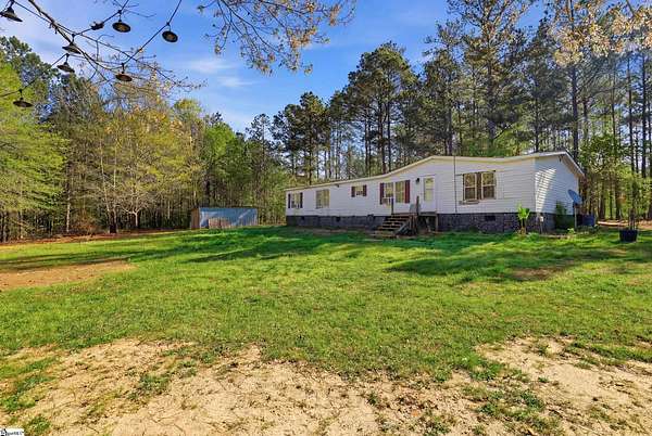 Tucked away on approximately 4 private acres, this 4-bedroom, 2-bath home offers the perfect blend of space, comfort, and seclusion. Surrounded by mature trees and set well off the road, the property provides a peaceful setting ideal for those seeking privacy without sacrificing accessibility. Inside, you’ll find over 1,800 square feet of living space featuring durable LVP flooring throughout the main areas and a functional, open layout designed for everyday living. The spacious living room flows seamlessly into the kitchen and dining area, creating a comfortable environment for gatherings and daily life. Large windows bring in natural light and offer views of the surrounding landscape. The kitchen is equipped with ample cabinet and counter space, making it both practical and efficient. The split-bedroom floor plan offers flexibility, with four generously sized bedrooms and two full bathrooms to accommodate a variety of living arrangements. Outside, the expansive acreage provides endless potential—whether you’re looking to create a homestead, add outbuildings, or simply enjoy the privacy and open space. With plenty of room to roam, this property delivers a rare opportunity to own usable land with a move-in ready home. This manufactured home sits on permanent foundation with HUD compliant foundation engineering certification. If you’re looking for space, privacy, and value, this property checks all the boxes.