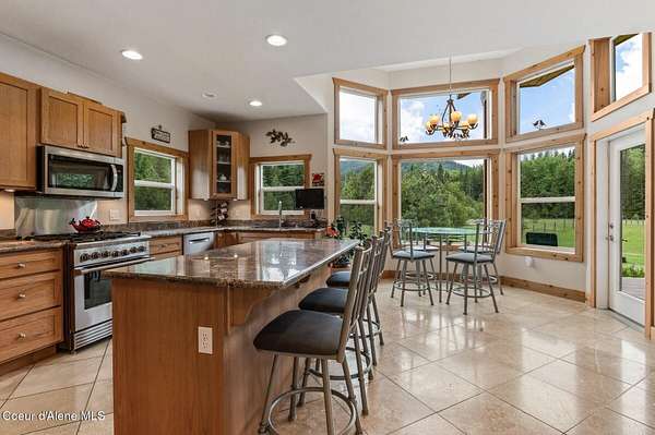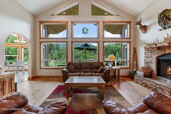 This beautifully maintained home sits on just over five serene and picturesque acres. From the moment you arrive, the mature landscaping and covered front porch invite you in, setting the stage for the warmth and charm found within. A welcoming foyer opens into a spacious great room, featuring lofted ceilings and a cozy wood-burning fireplace. Large windows frame breathtaking views of the surrounding mountains and pastures. You'll also find a formal dining room and a generously sized office. The kitchen is a chef's dream, boasting a large island and breakfast bar, abundant counter space, a walk-in pantry, and ample natural light that fills the space. The main level also has a spacious primary suite with dual closets, an en-suite bath, and panoramic mountain views. Upstairs, you'll discover three well-appointed bedrooms, including a second-level primary suite, offering flexibility for guests and living. Step outside to enjoy the park-like setting, with lush landscaping, a covered back deck ideal and the greenhouse and gardens, a horticultural dream come true extending the growing season and providing an ag exemption. This is more than a home. It's a private sanctuary where comfort meets natural beauty.