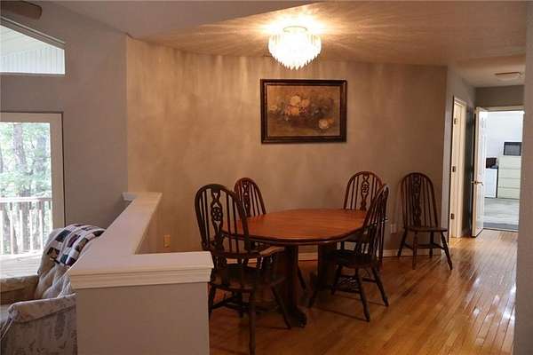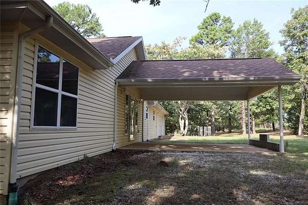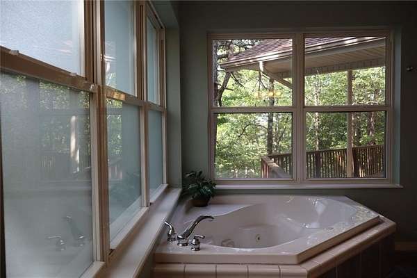 Come take a scenic drive near the Arkansas Grand Canyon just outside of Jasper to see this unique home! You'll be greeted by a stunning entryway, cathedral ceilings, sunken living room, fireplace and plenty of large windows to take in the natural light. Enjoy slow mornings and peaceful evening sunsets on the covered back deck, you'll be surrounded by quiet woods. The upper level of this home features 1979 Sq ft, generous master bedroom, walk-in closet and huge master bath showcasing a luxurious whirlpool tub! See also the dinning room and thoughtful kitchen, featuring vegetable sink and charming built-in bread box. The second bedroom boasts more of those incredible windows. Across the hall is a half bath, storage and W/D hookups. Downstairs you'll find lots of extra space to be used any way you like- a den, two extra rooms, patio, bathroom, and if it wasn't good enough- two massive hidden rooms with additional outdoor exits. It gets better with an oversized two car garage, built-in storage and a shed on 4.58 acres.