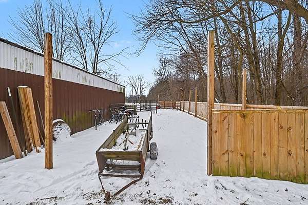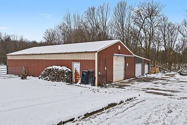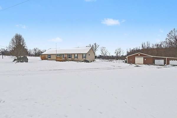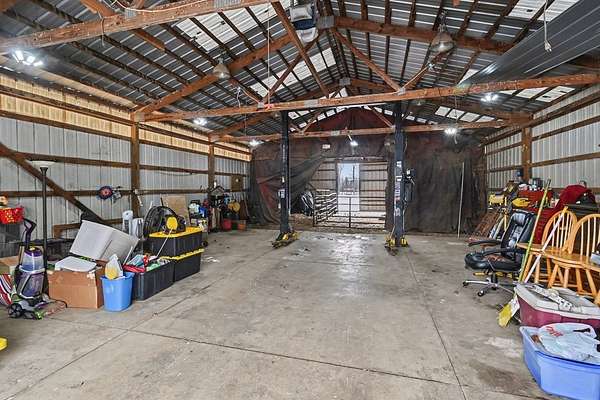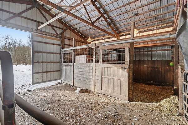 This hobby farm sits on just over two acres and boasts peaceful country living. The property offers two fenced pastures, a tranquil pond, and a well-equipped two-stall horse barn--ideal for equestrian use or flexible outdoor enjoyment. The 3-bedroom, 2-bath home provides 1,809 square feet of comfortable living with large bedrooms, ample storage, and a private primary suite featuring a spacious walk-in closet and an ensuite bath with a relaxing garden tub. Inviting living areas are warmed by a wood-burning fireplace and wood burner, while natural gas heat adds efficiency. A metal roof installed in 2019 offers lasting peace of mind. Outdoors, a substantial 30x60 barn is complemented by two additional 15x40 lean-to structures, creating exceptional versatility for animals, equipment, or hobbies. An electric RV hookup is also available on-site. Enjoy a quiet, open setting with room to breathe and grow!