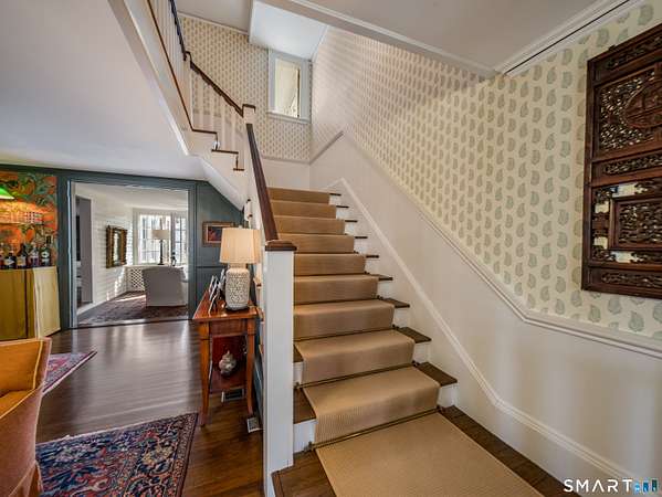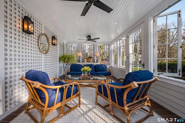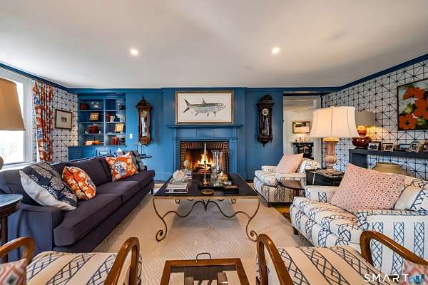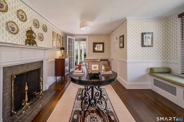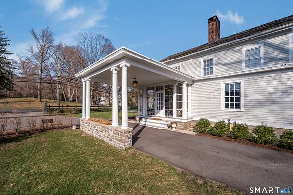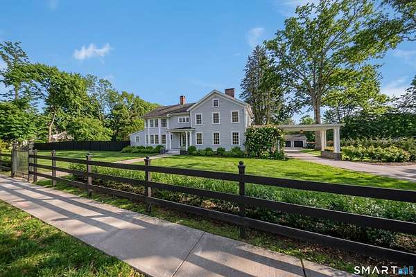 Move into this elegantly designed, meticulously restored estate in the nationally registered historic village of Ivoryton in the town of Essex. Built by the prominent Essex industrialist, Samuel Comstock, the 5,400 sq. ft. property on 1.86 acres offers history and grandeur to those seeking privacy and tasteful opulence. Preserved in the same family for five generations and recently completely re-designed and updated, this home is ideal for grand entertaining, large family gatherings, and other unique experiences. Historic details have been preserved throughout, complemented with an updated chef's kitchen, butler's pantry, and new appliances. Thoughtful, custom interior design elements feature prominently in the grand living room and multiple seating areas. The ample 5 bedrooms and 5 1/2 bathrooms have been tastefully updated while retaining timeless architectural elements. Old world charm can be experienced in the renovated 3 season sunroom. Two separate home offices make working from home a pleasure. Outside, newly landscaped grounds mingle with century old trees and shrubs. New formal hedges, hydrangea gardens, fencing, and bluestone patios offer privacy, seclusion, and outdoor enjoyment unique for a property inside the village. The 20 x40 gunite pool is perfect for exercise and recreation alike. A newly constructed 2-car garage can accommodate electric vehicles or store vintage cars. Truly unique and like no other. A rare opportunity.