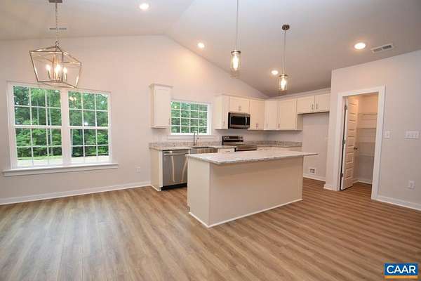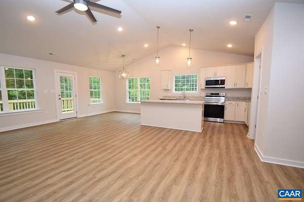 DRYWALL TO BEGIN! (12/8) ONE LEVEL LIVING AT IT'S BEST! The CAMERON open concept floor plan is located in Martin Village. Upgrades include a welcoming front porch, sideload garage, craftsman style front door, wide window trim, and large rear deck. Interior upgrades include trim package in the foyer and engineered hardwood floors in the main living areas, Tier 2 cabinets in the kitchen with 2x7 island with overhang with pendant lights, granite counters, stainless appliances, oversized window above the sink and walk in pantry. Flex room/4th bedroom with french doors for added privacy. Spacious primary bedroom with ceiling fan, ensuite bath with 5' walk in shower and double bowl, two additional bedrooms, pull down attic for storage, elongated toilets, laundry sink, soft close easy glide drawers throughout. FEBRUARY COMPLETION! We have other lots available! Ask how to receive $7,500 in seller paid closing costs.