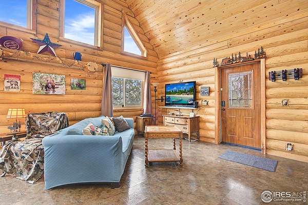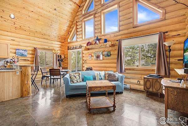 Escape to your own Colorado mountain retreat in sought-after Crystal Lakes. Built in 2016 and offered furnished, this move-in-ready 3-bedroom, 2-bath log cabin sits on a stunning 1.56-acre wooded lot with rock outcroppings, incredible views, and exceptional privacy on a quiet street. The open main level features soaring two-story vaulted ceilings that flood the home with natural light and frame picturesque mountain scenery. The kitchen is equipped with stainless steel appliances, a gas range/oven, and granite countertops-ideal for everyday living or entertaining. A cozy gas stove in the living room adds the perfect mountain ambiance with low-maintenance comfort. The main-level primary suite includes an attached bath for convenient one-level living. Upstairs, two additional bedrooms and a full bath provide space for family and guests. A main-level utility room with washer adds practicality. Enjoy the outdoors from the wraparound deck or the expansive 20' x 40' lower deck-perfect for entertaining, relaxing, or even a unique camping platform for guests. Recent improvements include a new leach field and expanded cistern capacity, making this home suitable for full-time living or a second home. Located near Beaver Meadows Resort and less than one mile from the community clubhouse and amenities, with access to lakes, fishing, hiking, biking, golf, and year-round recreation. Turn-key and ready for your mountain lifestyle-weekend escape or full-time tranquility.
