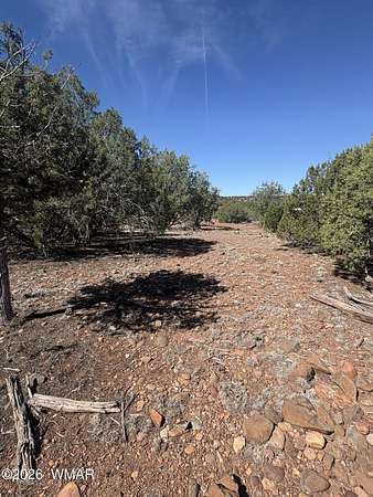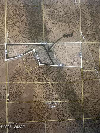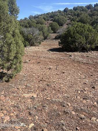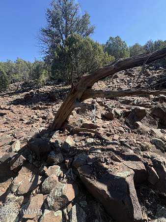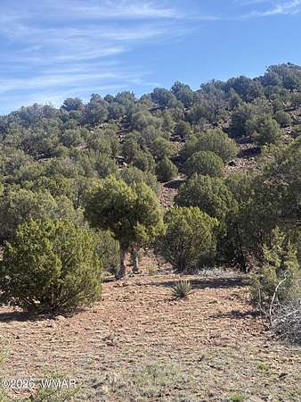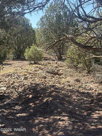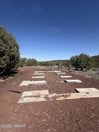 Approximately 10 acres with a septic and concrete footers for a home to rest on. Property is well treed and is nestled right against the Black Mesa Cliffs. Quite location. Lots of wild life, game trails, petrified wood and a perfect spot to begin construction on a home, or to just camp in the summer. No HOA. Seller will provide a survey. Please see photos for Appx boundaries.
