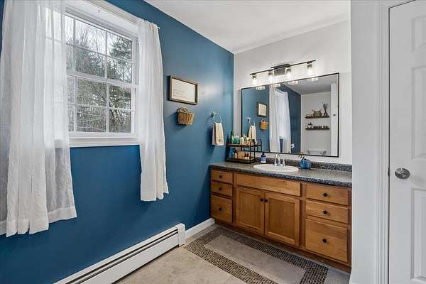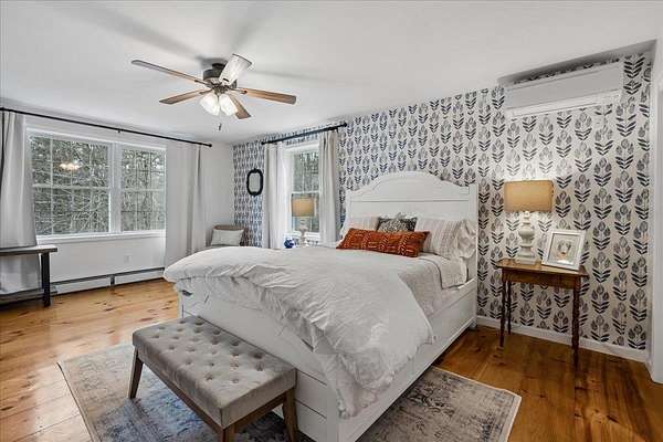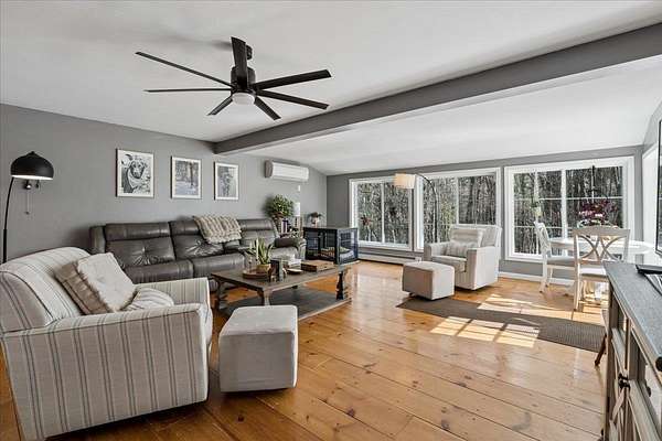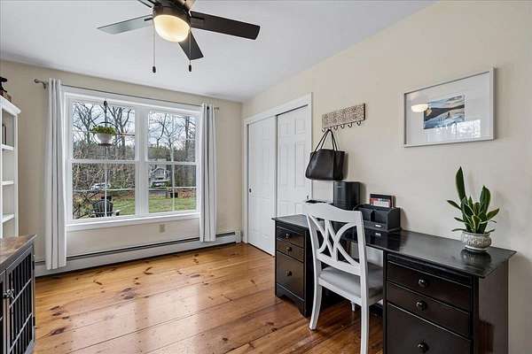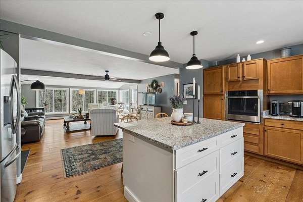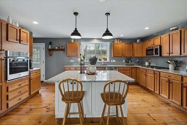 Come fall in love with this wonderful Cape complete with gorgeous views from the 3.5+ acre lot on a quiet countryside road. At the heart of this home is an open kitchen/living room floor plan with the added bonus of a first floor bedroom, office, and laundry/full bathroom. Continue to the second floor to find two large bedrooms and another full bath. Many desired updates have been made including a kitchen island (2024), granite counters (2022), stainless appliances (2022), buderus heating system & heat pump mini splits (2022) and a fabulous off the living room exterior Azek deck with stairs & metal railing system (2022) for outdoor relaxing or entertaining with a view! Desired while hopefully not often needed, is a whole house generator ready for a stormy day. In 2025, new windows were installed in the living room, kitchen and 1st floor bedroom. Additional special features include wide soft pine floors throughout, numerous & expansive closets, and a unique horse stall extended off the rear of the 2 car garage that makes an exceptional storage room, workshop or gardener's potting bench space. The unfinished walk out basement awaits your future plans. If you enjoy country living while being conveniently located to commuter route 101, don't miss the opportunity to make this special home your next one!