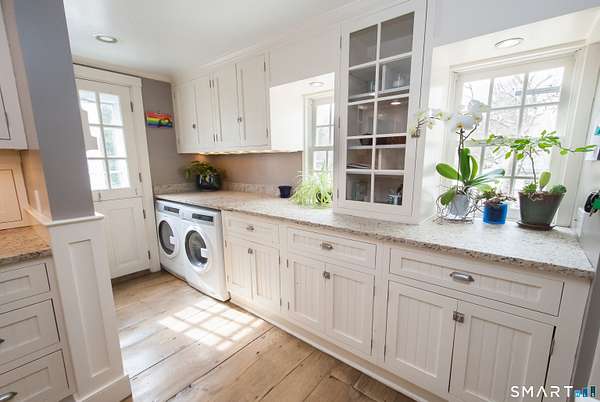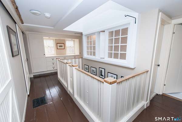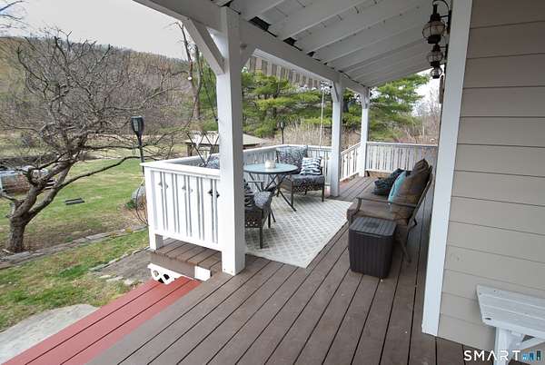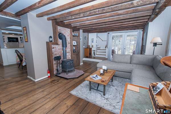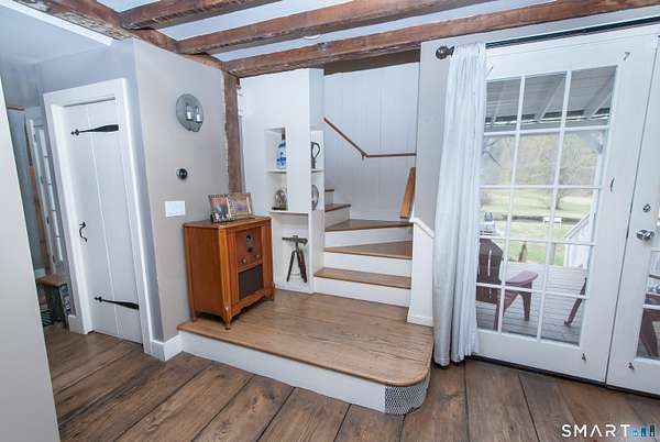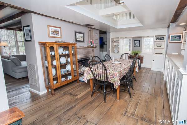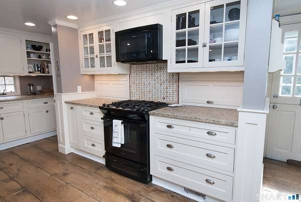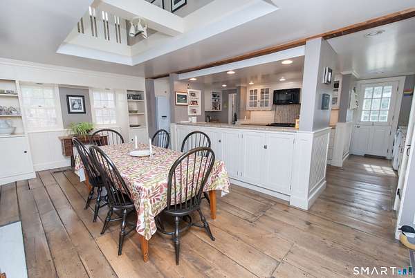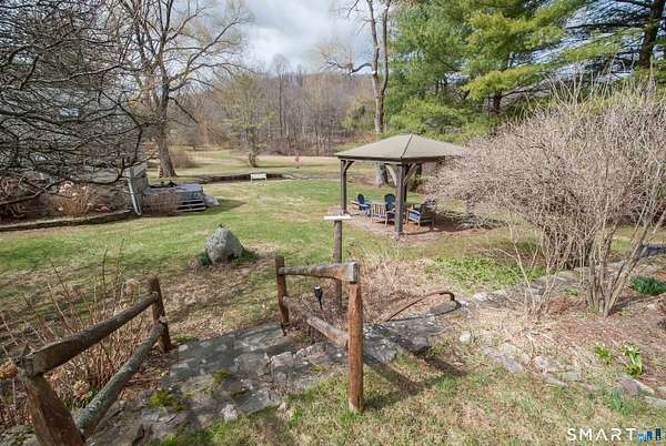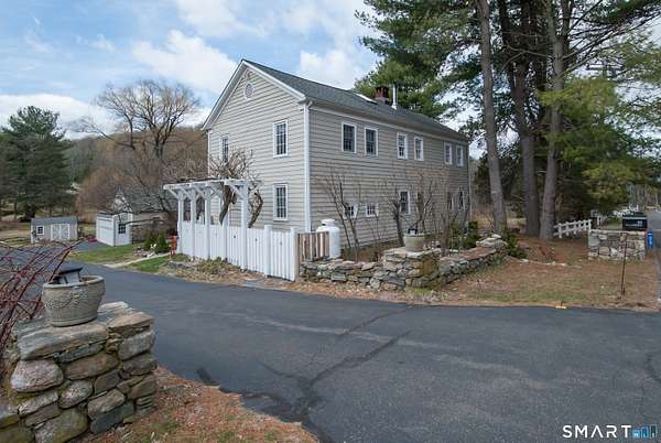 Quintessential Connecticut Farmhouse that has been remodeled to perfection. This property beautifully blends antique charm with modern luxury and is a must-see to be fully appreciated. The interior features a gorgeous chef's kitchen with extensive storage and a dining room spacious enough for both large parties and intimate dinners. The living room is framed by large windows offering views of the expansive backyard and includes a wood-burning stove for the winter months. On the upper level, you will find three spacious bedrooms and a luxurious full bathroom, along with an unexpected abundance of storage for a home of this era. Additionally, the lower level is exceptionally clean and currently serves as a functional workout space. The exterior of the property is equally impressive, featuring mature plantings, a running brook, a gazebo, and a hot tub. The estate also includes a two-car heated garage with additional storage on the upper level. Please let me know if you would like to schedule a viewing or if you require any further information regarding this exceptional home.