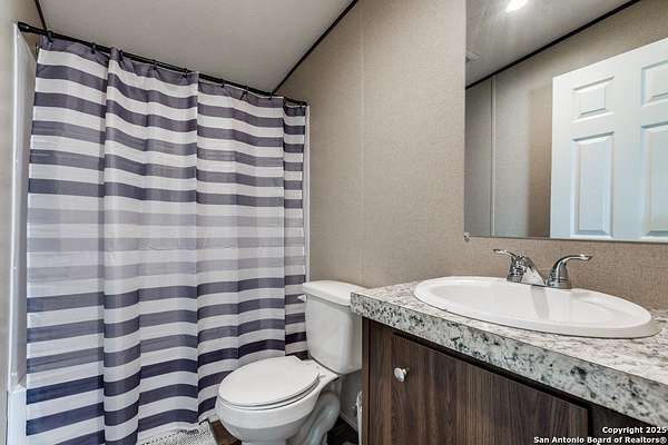 Welcome to a stunning 1.52 acre retreat nestled on a gentle hill in the rolling Texas countryside. This NEW build double wide manufactured home with new septic system, spanning 1264sf boasts a modern open concept design with three spacious bedrooms and two full bathrooms perfect for comfortable family living with serene escapes and plenty of parking for friends and family. Step in to discover high quality finishes with appliances included, ample natural light from double pane windows, and durable low maintenance flooring ideal for everyday life. The expansive acreage invites endless possibilities for a dream garden, entertaining, or the peace and privacy from rural life. Easy access to highways 1604 and 16. Located between Somerset and Poteet, in Von Ormy. Come take a look and enjoy the sunset. Please very all information and measurements on this listing.