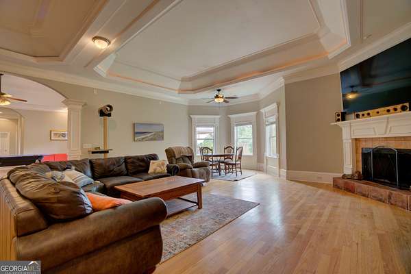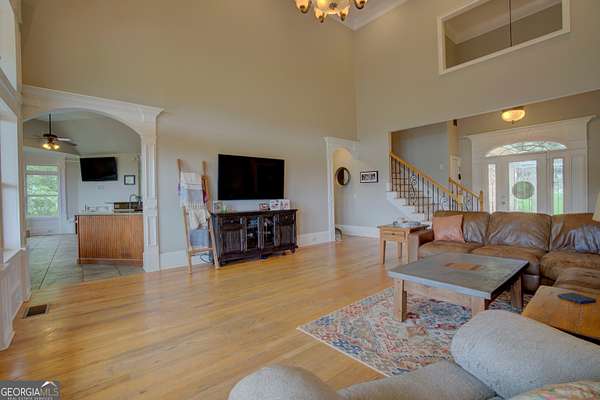 Gated Community! Easy drive to Atlanta which is less than an hour away on Hwy 278. 20 minutes to Rome, 30 minutes to Cartersville. This is an AMAZING house! The main level has two bedrooms, including master, and 2 1/2 baths, office, great room and keeping room off of the kitchen, large walk-in pantry. Upstairs is a perfect suite with living area and full bath. The finished basement includes two bedrooms and 1 1/2baths along with a living area with fireplace, kitchen area, exercise room, game room, safe room and a shop. Unreal craftsmanship throughout this home with lots of custom features! Too many amenities to list! Beautiful views from many areas inside and Spectacular views from outside the covered and open deck! Oversized 3 car garage that offers additional storage. Private 1.69 acre lot that features lots of plants, fruit trees, grape vines, berry bushes and a chicken coup. Partial fenced back yard. This one is a must see!!! Motivated Sellers relocating!!!