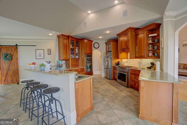 - Cooktop, Dishwasher, Disposal, Double Oven, Gas Water Heater, Ice Maker, Microwave, Oven, Stainless Steel Appliance(s)