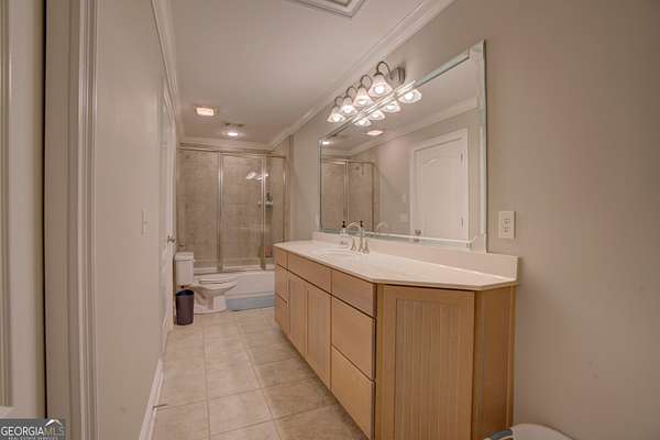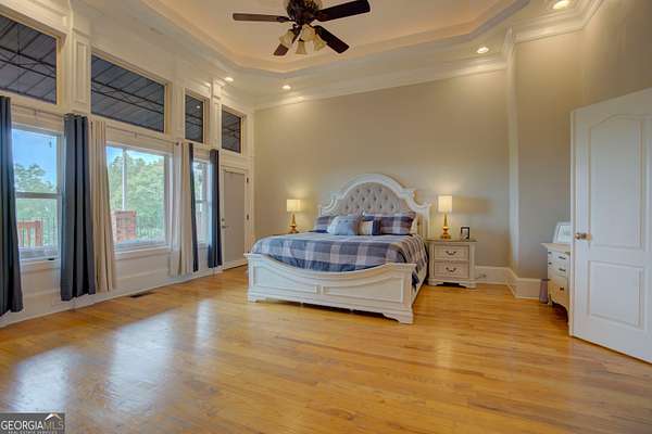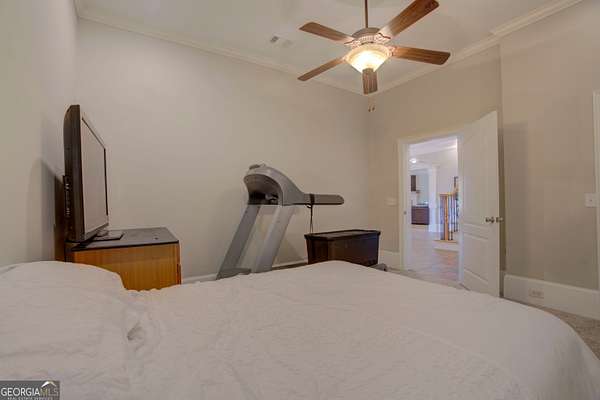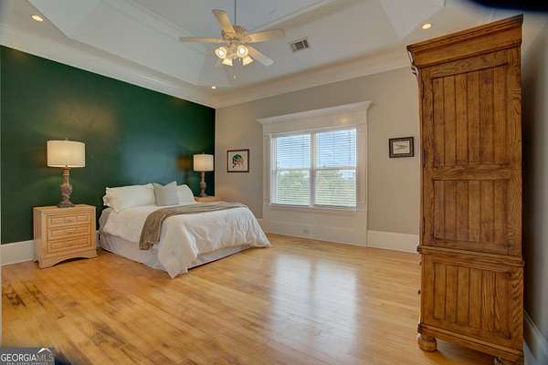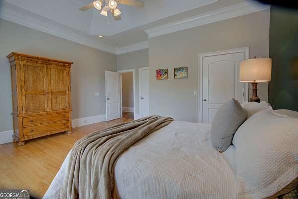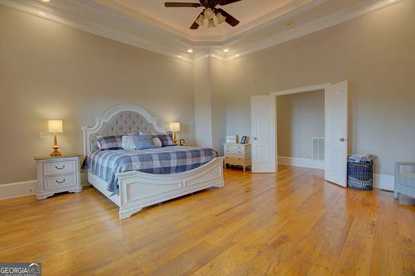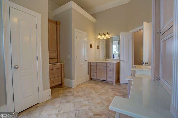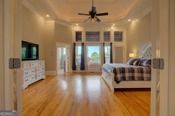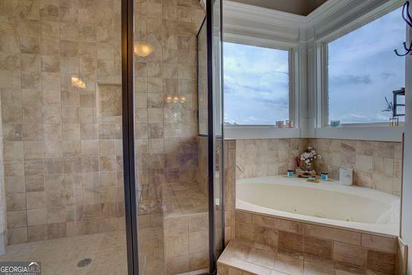 - Bookcases, Double Vanity, High Ceilings, In-Law Floorplan, Master On Main Level, Separate Shower, Soaking Tub, Tile Bath, Tray Ceiling(s), Walk-In Closet(s)