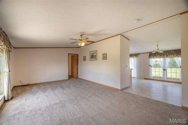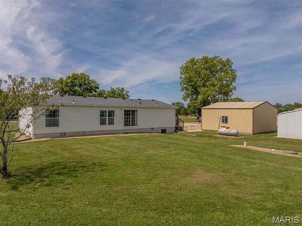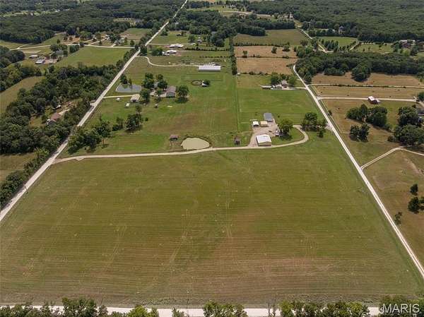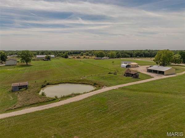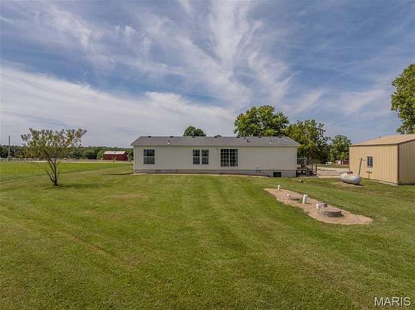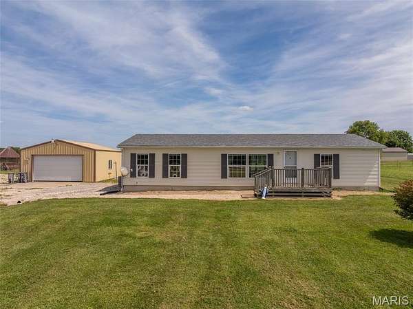 Limitless possibilities! Very well maintained 3 bedroom 2 full bathroom manufactured home with multiple outbuildings on 19.2+/- acres just minutes from Troy in Lincoln County. Property is completely open, lays extremely well and has a pond. Home was built in 2003 and sits on a concrete shortwall foundation. Each of the 3 bedrooms has a large walk-in closet and the main living area is open with vaulted ceilings. Some recent updates include brand new carpet this year, as well as roof, well pump and motor, AC condenser and A-Coil in the past 3 years. There is a 25x25 detached garage with concrete floors and electric plus a pole barn measuring 50x45. Property has had the corners marked by All American Land Surveying and the pasture produced 140 round bales this year making it perfect for horses or cows. The land has road frontage on 3 sides with established accesses on Dodson and Thieson giving it development potential as well. All of this is less than a mile from Cuivre River State Park where you can enjoy the hiking trails and fish in the lakes. No known restrictions or HOA.