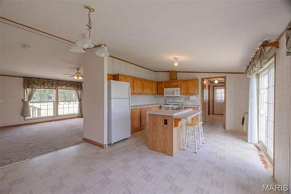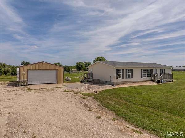 Limitless possibilities! Very well maintained 3 bedroom 2 full bathroom manufactured home with multiple outbuildings on 6.24+/- acres just minutes from Troy in Lincoln County. Property is completely open, lays extremely well and has a pond. Home was built in 2003 and sits on a concrete shortwall foundation. Each of the 3 bedrooms has a large walk-in closet and the main living area is open with vaulted ceilings. Some recent updates include brand new carpet this year, as well as roof, well pump and motor, AC condenser and A-Coil in the past 3 years. There is a 25x25 detached garage with concrete floors and electric plus a pole barn measuring 50x45. Property has had the corners marked by All American Land Surveying and the pasture produced 140 round bales this year making it perfect for horses or cows. Additional 2.77+/- and (2) 5.06+/- acre lots available as well. All of this is less than a mile from Cuivre River State Park where you can enjoy the hiking trails and fish in the lakes. No known restrictions or HOA.