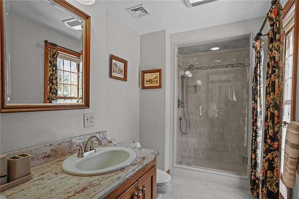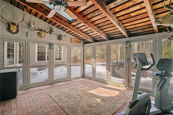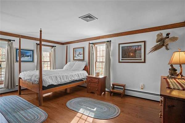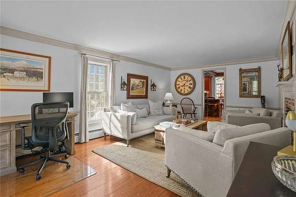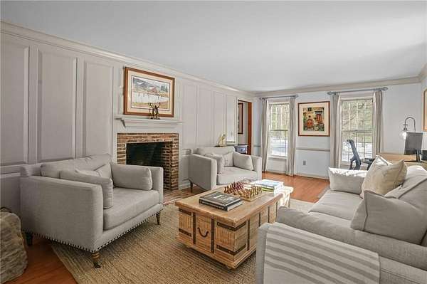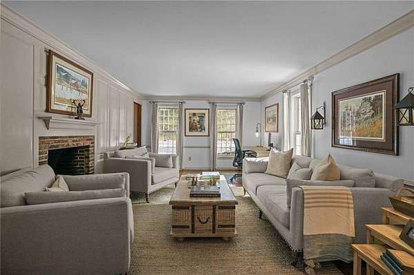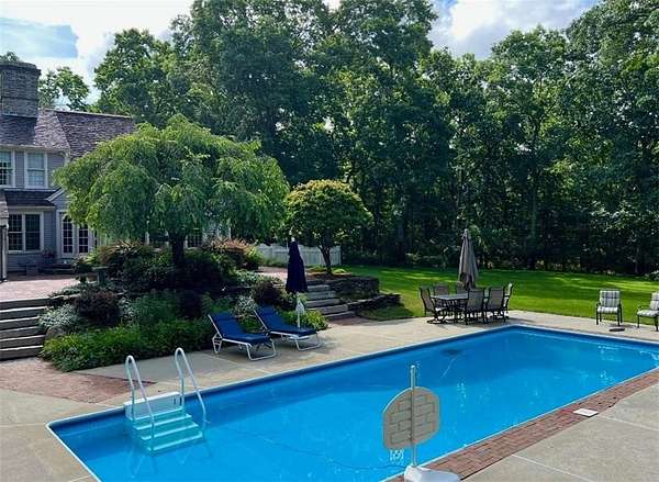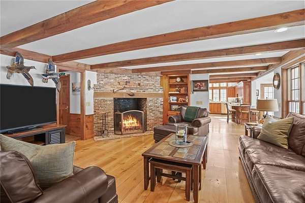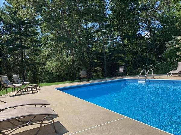 Exceptional offering in desirable Scituate RI : This custom-built Colonial home sits on over five private acres and delivers the rare balance of refined craftsmanship, estate-level privacy, and commuter accessibility - just minutes 15 mins to Downtown Providence with easy access to Routes 295 and 6. Thoughtfully designed and continually enhanced, this home showcases timeless architectural details throughout, rich wide plank hardwood flooring, crown molding, custom millwork, and raised panel accents creating a warm yet sophisticated interior. Three brick fireplaces anchor the living spaces, including a striking centerpiece in the family room that adds both character and scale. The updated kitchen blends elegance and function, featuring custom cherry cabinetry, quartz countertops, stainless appliances, and generous prep space ideal for both daily living and entertaining. The adjoining dining area overlooks the resort-style backyard, where an in-ground pool and mature landscaping create a private outdoor retreat. With 4 bedrooms, including 2 primary suites positioned on separate wings, the layout offers flexibility for guests, multi-generational living. A 26x40 detached heated workshop provides exceptional bonus space for hobbyists, collectors, or entrepreneurs, complementing an oversized two-car attached garage with expansive parking. Privately set yet minutes to major commuter routes, this estate offers a rare combination of tranquility, craftsmanship, and accessibility.