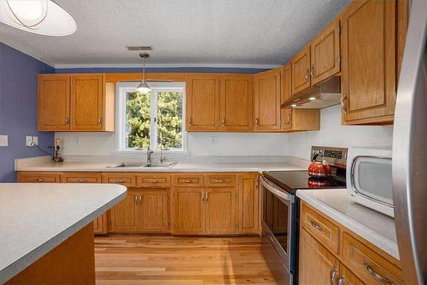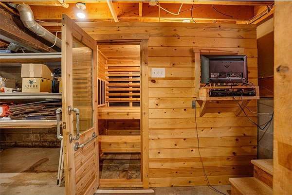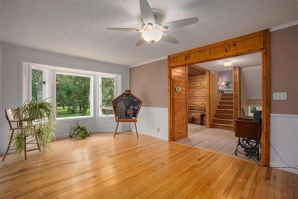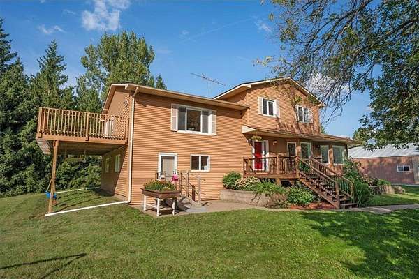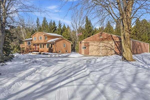 Step inside to a welcoming foyer with convenient main-level laundry. From here, you'll find a spacious family room and a huge private primary suite complete with a walk-in closet and full bath. The next level up offers a cozy living room, a dining area with access to the deck, and a beautiful kitchen featuring a large island. Upstairs are three additional bedrooms and another full bath. Below the main level, you'll discover an extended family suite with its own entrance, offering a small kitchen, living area, bedroom, and bathroom--ideal for a mother-in-law suite, guest space, or even a home business. The lowest level continues to impress with a sauna and an enclosed workshop. Outdoors, enjoy the expansive deck overlooking more than 5 acres with mature trees and a beautifully kept yard. The impressive 40x80 pole shed features over 1,200 square feet of heated and cooled finished space, while the remaining area provides ample room for vehicles, toys, and storage. This property combines space, versatility, and convenience--all in one incredible setting. Property is located adjacent to train tracks. Train comes through a couple of times a day, sellers have lived at home since 1986 and say with all of the trees they have lined the yard with dampens the noise and have become accustomed to it.
