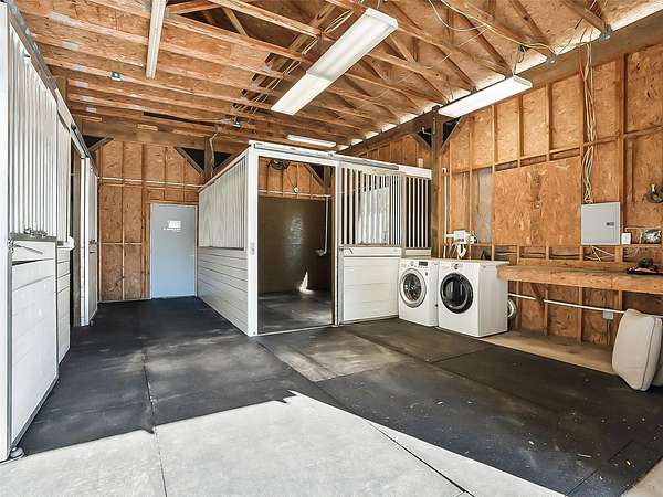 Golf cart to the World Equestrian Center located just short minutes away from this custom built concrete block home with barn & arena on over 3 acres! This turn-key mini horse farm is move-in ready for you & your horses & is fully fenced with an electric gated entrance. The pristine condition home has 4 bedrooms, 2 full bathrooms, attached garage, adorable & expansive covered front porch & covered rear patio. The house has been recently updated inside with new flooring, interior re-paint, light fixtures & more, & the gourmet kitchen boasts stainless appliances, granite counter tops, & a large island. The barn boasts 5, 12 x 12 stalls w/ mats, fans & automatic water to each, a tack/feed room w/ AC, washer & dryer, 1 wash stall, & 1 grooming stall. The riding arena is 100' x 200' & has a professionally installed surface with GGT fiber footing. The property provides 3 grass paddocks with 3 board wood fencing & a recently built metal storage shed. This quiet neighborhood is centrally located to shopping & schools & has no HOA. The property has a lovely circular driveway & plenty of room for parking trailers, rv's & boats. The house can be purchased completely furnished.