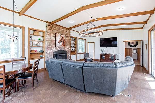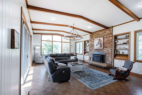 Charming 5-Bedroom Brick Farmhouse on 5.91 Acres . This picturesque one-level brick farmhouse blends rustic charm with modern convenience. Boasting 5 spacious bedrooms and 2.5 bathrooms, this home offers a welcoming layout perfect for family living and entertaining. Inside, enjoy a bright and airy atmosphere with hardwood floors, a cozy living area, and a basement. The kitchen opens to a dining area, ideal for gatherings large or small. Outside, the property is a dream for hobby farmers or equestrians, featuring a fenced pasture .Additional structures include a guest cabin--perfect for visitors or rental income. With gently rolling land, privacy, and plenty of room to roam.