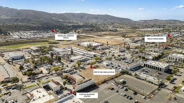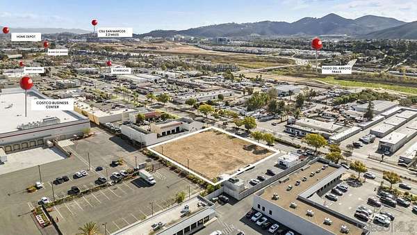 Vacant land with mixed used, 4 story, redevelopment opportunity in the heart of San Marcos. Proposed plans of roughly 3,700 sq ft of commercial space and a mix of 27 units consisting of 3, 2 and 1 bedrooms of condominium ownership. Property will be delivered with entitlement. Close proximity to CSUSM (2.2 miles), Palomar College (1.6 miles), San Marcos Civic Center (1.8 miles), Lake San Marcos (1.8 miles), Palomar Hospital (5 miles) and surrounded by multiple health clinics. Property consists of 2 APN's (219-331-34-00 & 219-331-35-00). Total sq ft of lot is 38,282 (0.88 acres).