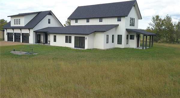 Beautiful new construction custom home on 7.84 acres! Panoramic views from every room of the home, offering wonderful opportunities for any buyer looking for peace & tranquility. Amazing sunsets & an abundance of wildlife. This stunning home offers one-level living with 36" doors, spectacular tile floors & in-floor heat throughout. Enjoy the high ceilings, natural light, and open floor plan! The spacious kitchen offers self-closing cabinet doors & drawers, quartz countertops & large center island; great room with 21 ft ceiling, gas FP, and well-appointed built-ins; 3 bedrooms on main floor with the primary suite offering a west-facing sitting area & patio, en-suite with stunning walk-in tile shower, soaking tub, double sink vanity & walk-in closet. The main floor also offers 2 more bedrooms, each with their own private 3/4 baths, complete with tile showers, quartz countertops & walk-in closets; large walk-in pantry, 1/2 bath, separate laundry room w/cabinet & counter space. The upstairs includes an large, open loft area, an additional bedroom & 3/4 bath! In addition to all of this, there is a separate apartment above the garage that offers endless possibilities - private entry with access to fantastic space with full kitchen, which also offers quartz countertops, center island & SS appliances, informal dining area, large bedroom w/dual closets & 3/4 bath complete with walk-in shower, laundry room & plenty of storage. Looking for that perfect garage? Garage has nearly 1500 sq ft w/work bench, separate work space w/sink, large storage closet & area for future sauna. This extraordinary home is located at the end of a cul-de-sac providing sanctuary when working or relaxing at home. Endless opportunities for buyers wanting a pole shed, garden and/or pool. There is plenty of space! Come and see for yourself!