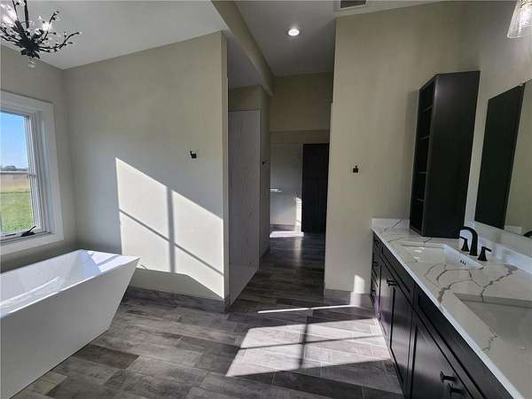 Beautiful new construction custom home completed in 2025, and is located on 7.84 acres! Panoramic views from every room of the home, offering wonderful opportunities for any buyer looking for peace & tranquility. Amazing sunsets & an abundance of wildlife. This stunning home offers one-level living with 36" doors, spectacular tile floors & in-floor heat throughout. Enjoy the high ceilings, natural light, and open floor plan! The spacious kitchen offers self-closing cabinet doors & drawers, quartz countertops & large center island; great room with 21 ft ceiling, gas FP, and well-appointed built-ins; 3 bedrooms on main floor with the primary suite offering a west-facing sitting area & patio, en-suite with stunning walk-in tile shower, soaking tub, double sink vanity & walk-in closet. The main floor also offers 2 more bedrooms, each with their own private 3/4 baths, complete with tile showers, quartz countertops & walk-in closets; large walk-in pantry, 1/2 bath, separate laundry room w/cabinet & counter space. The upstairs includes an large, open loft area, an additional bedroom & 3/4 bath! In addition to all of this, there is a separate apartment above the garage that offers endless possibilities - private entry with access to fantastic space with full kitchen, which also offers quartz countertops, center island & SS appliances, informal dining area, large bedroom w/dual closets & 3/4 bath complete with walk-in shower, laundry room & plenty of storage. Looking for that perfect garage? Garage has nearly 1500 sq ft w/work bench, separate work space w/sink, large storage closet & area for future sauna. This extraordinary home is located at the end of a cul-de-sac providing sanctuary when working or relaxing at home. Endless opportunities for buyers wanting a pole shed, garden and/or pool. There is plenty of space! Come and see for yourself!