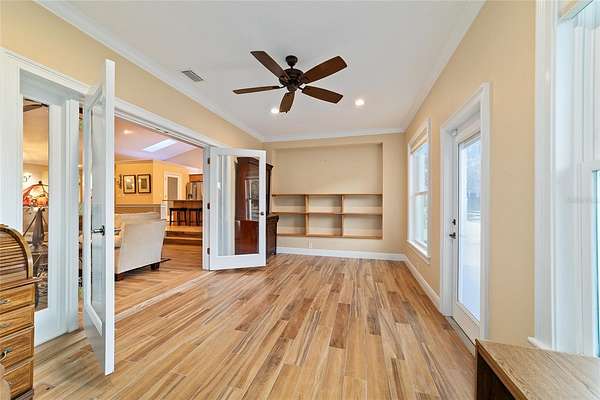 - Built-In Features, Cathedral Ceiling(s), Ceiling Fans(s), Crown Molding, Eat-In Kitchen, Kitchen/Family Room Combo, Open Floorplan, Primary Bedroom Main Floor, Smart Home, Solid Wood Cabinets, Split Bedroom, Stone Counters, Thermostat, Walk-In Closet(s), Wet Bar, Window Treatments