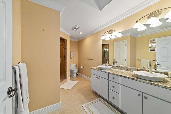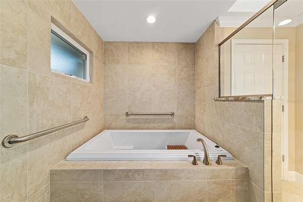The owner's suite is a true retreat, complete with a walk-in closet and a luxurious bath that includes dual sinks, a walk-in shower, and a soaking tub. Two additional bedrooms, each with their own private baths, offer comfort and flexibility for guests or family. The home also includes a dedicated office or den, wet bar, and a formal dining area--ideal for entertaining.