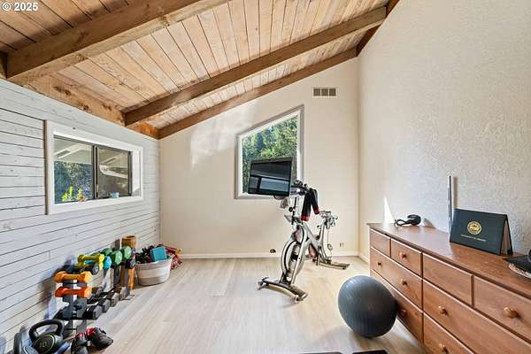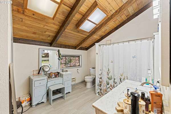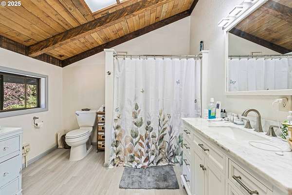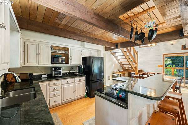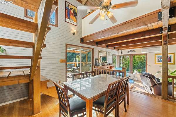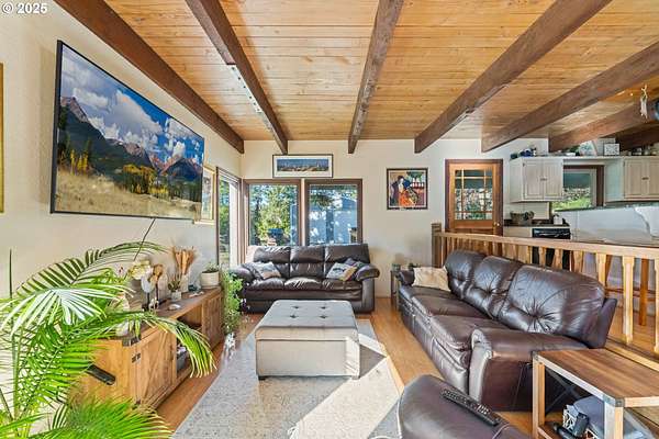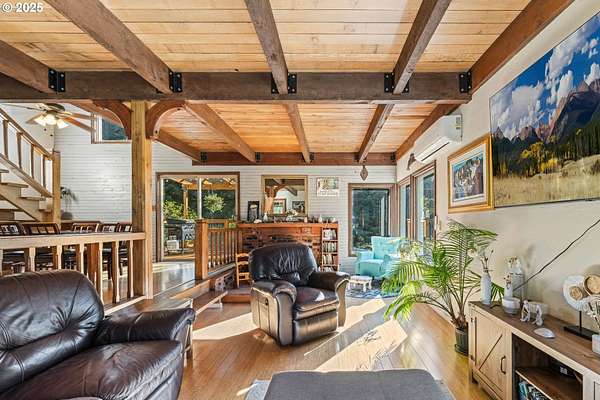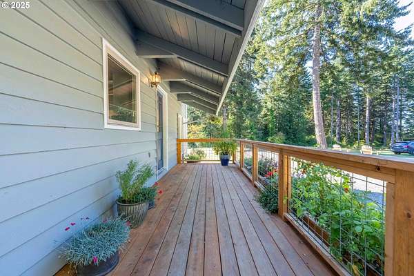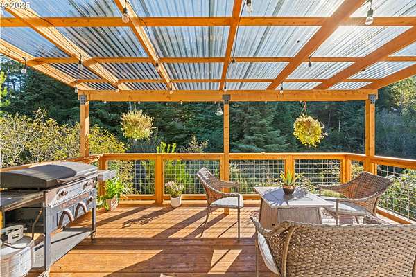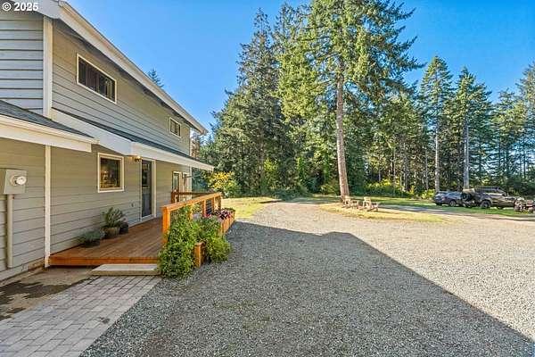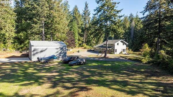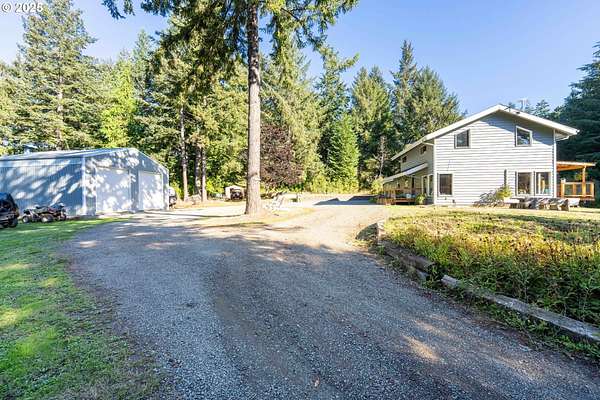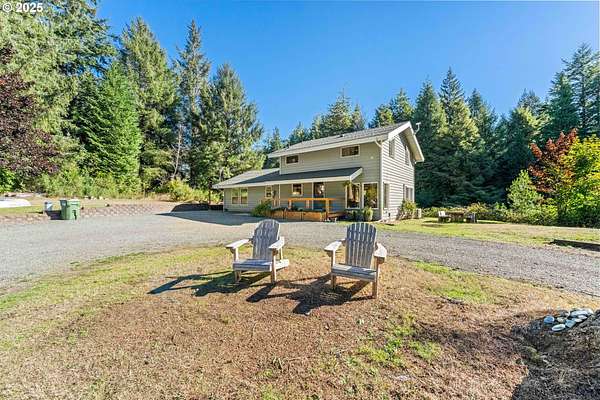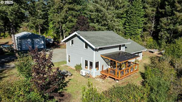 Sitting on 4.70 acres in a warmer pocket of Bandon, this 3 bedroom, 2 bathroom, updated home is perfect for relaxing and entertaining. Upstairs, you'll find a remodeled bathroom and a versatile loft area, perfect for an office, workout space, or an expanded primary bedroom. All new flooring upstairs was JUST added, giving the space a fresh, modern feel! The main level features bamboo flooring, an updated kitchen with granite counters and a spacious walk-in pantry, plus two bedrooms and a full bathroom, all with new paint. Step outside to brand new front and back decks (completed summer 2025), ideal for barbecues, gatherings, or simply enjoying the peaceful surroundings. Outdoors, the property offers something for everyone: a private pond, a 28x34x14 shop built in 2021, an attached carport, and even a basketball court behind the shop with plenty of yard for activities. Lovingly cared for by the same owners for over a decade, this home shows true pride of ownership inside and out. Whether it's hosting friends, working on projects, or enjoying nature, this home has it all. Just minutes from town and the coast, this is a rare chance to own a move-in ready home with space, upgrades, and plenty of charm!