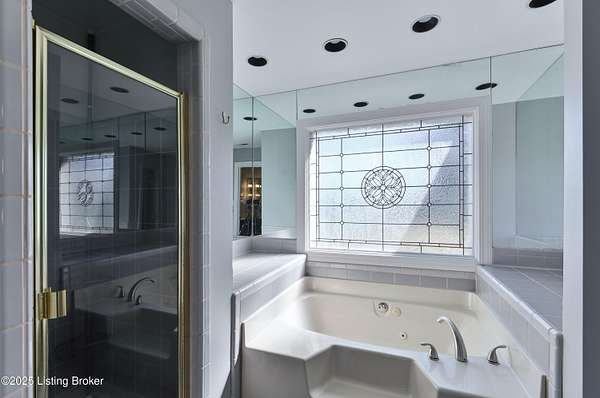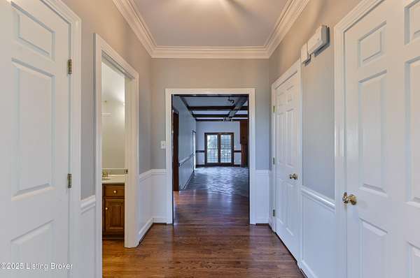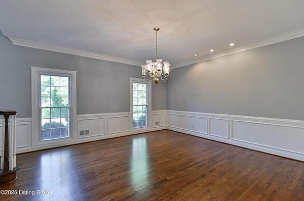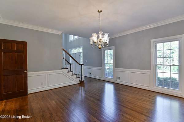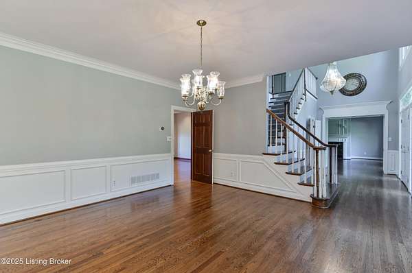 This property is sold together with 5220 Chamberlain Ln, offering a unique 3.439-acre development opportunity or estate home with additional residence. Discover an elegant estate home in an exclusive neighborhood, conveniently located near shopping and major interstates. This center hall residence features 4 bedrooms and 4.5 baths, welcoming you with a two-story foyer and turned staircase. The home is adorned with double doors featuring leaded glass sidelights and transoms, complemented by exquisite moldings. Key features include a formal living room with a fireplace and a dining room showcasing hardwood flooring extending into the kitchen. A generous family room with a beamed ceiling, built-ins, and a fireplace, provides access to both the deck and patio. The inviting kitchen with a bayed eating area provides an island with a snack bar and a planning desk. A bright sunroom adjoining the family room opens to the deck for an airy feel. The luxurious primary suite includes a cozy sitting area, double sink and single sink vanities, a whirlpool tub and shower, and a leaded glass window, along with service stairs to the kitchen. Two bedrooms share a Jack and Jill bathroom, while another bedroom has access to a hall bath. A sitting area is conveniently located in the hallway. Your finished lower level includes a family room, game room, full bath, wet bar, and walk-up stairs leading to the backyard. Ample parking is provided with a three-car garage. The second home on the property, located at 5220 Chamberlain Ln, is a 1,386 sq ft, 3 bedroom, 1 bath brick home with a walkout and unfinished basement, perfect for guests or in-law living, and includes a 12 x 22 detached garage. Situated in the Wolf Pen Preservation Area, this property is just minutes from retail, dining, and entertainment options throughout Paddock Shops and Norton Commons, as well as being close to expressways. Schedule a private tour today!