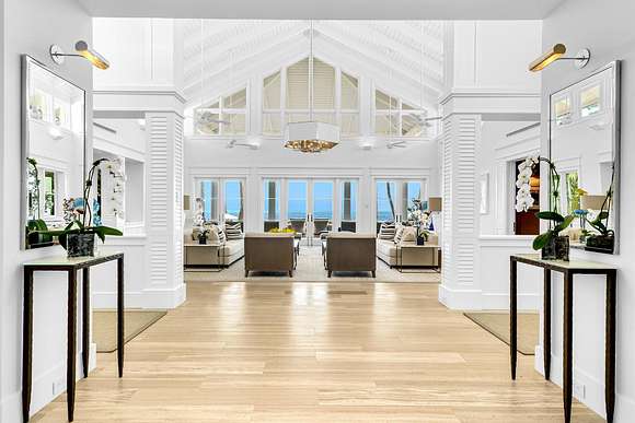 Coccoloba: Awarded Florida's ASLA Garden of the Year. A once-in-a-lifetime opportunity to own one of Florida's most distinguished oceanfront estates, a secluded sanctuary where visionary design meets botanical perfection. Nestled on over five acres of waterfront bliss, this architectural triumph--conceived by the acclaimed Siskind Architects--is a symphony of elegance, privacy, and coastal grandeur.The estate's lush, immersive gardens--crafted by legendary landscape architect Raymond Jungles--earned the coveted ASLA Florida Chapter Award, celebrating its harmonious blend of native flora, curated tranquility, and ecological artistry. Meandering stone-through pathways invite reflection, leading to a saltwater pond teeming with indigenous sea life.Step into ~11,000 sq ft of bespoke, air-conditioned living space meticulously curated by renowned interior designer Sam Robin. The home's total footprint exceeds 17,895 sq ft, with expansive verandas that dissolve boundaries between interior elegance and outdoor serenity.Curated for Collectors & EntertainersFour-bay air-conditioned collector's garage. Additional porticos + crushed shell driveway bordered by cut coral.Elevated summer kitchen with pizza oven, push-button TV, and unobstructed views.Dedicated cabana bath + equipment room for effortless hosting.Oceanfront Opulence: Positioned on a private peninsula with secure gated access, the property offers a protected boat basin, two lifts, and a 450-foot dock, as well as a submersible toys dock. A private beach lets you slip into the ocean in total privacy. Resort-Level Amenities include:Gas-heated oasis pool + hot tub + waterfall grotto - Swim-jet therapy + beach entry for rejuvenation..Peninsula lounge doubles as helipad or tropical party venue with Tiki barGas tiki torches for enchanting evenings.This is not merely a home--it is a legacy estate woven with rarity, intentionality, and coastal prestige. A true collector's piece.