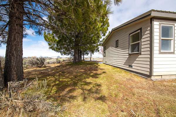 Charming 2 bedroom, 2 bathroom home located on two dividable 1-acre parcels in Christmas Valley. This well-built home features new carpet and laminate, generous storage, and a large bonus room with potential for conversion into a third bedroom or flexible living space. Topped off with a metal roof. The property includes a tranquil pond and a variety of established trees such as Pear, Poplar, Aspen, Russian Olive, Willow, and Ponderosa Pines, creating a peaceful setting. RV hookup is available, and a detached garage with concrete floor, workbench, and 220V power adds functionality. A utility shed provides extra space for tools and supplies.Don't forget the Aviary. The level, usable land offers room for expansion or development; buyer to perform due diligence regarding parcel division and use. With a little TLC and vision, this home could become a unique high desert retreat.