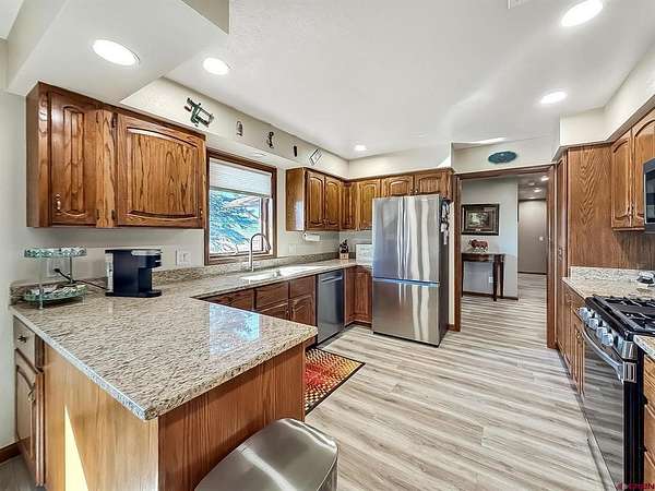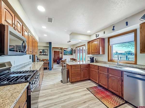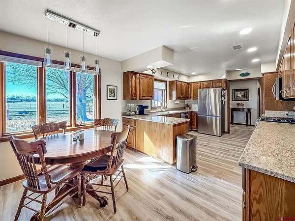Custer McLeod, Needlerock Mountain Realty and Land, LLC, C: 970-209-0696, custer.realty@gmail.com, www.crenmls.com: Spacious country ranch style home offering peaceful living with spectacular views of the West Elk Mountains. This well maintained property combines privacy and quiet surroundings while being conveniently located just minutes from town, shopping, schools, and the local medical clinic. The home features comfortable one level living with only a single step down into the cozy sunken family room. Inside you'll find three bedrooms, two and a half baths, a welcoming country kitchen, and generous living spaces including a living room, dining area, and family room with a wood fireplace. Additional highlights include a large storage area and a versatile hobby room perfect for crafts, projects, or a home office. Recent updates include beautiful new flooring, granite countertops, remodeled bathrooms, and comfort of new central air conditioning. Large windows capture the phenomenal mountain views and bring in abundant natural light. Step outside to enjoy a spacious irrigated lawn with water provided by the Smith Fork Project, ideal for relaxing, gardening, or watching the deer pass through in the mornings. With breathtaking West Elk views and peaceful country surroundings, this property truly offers the best of Western Colorado living.