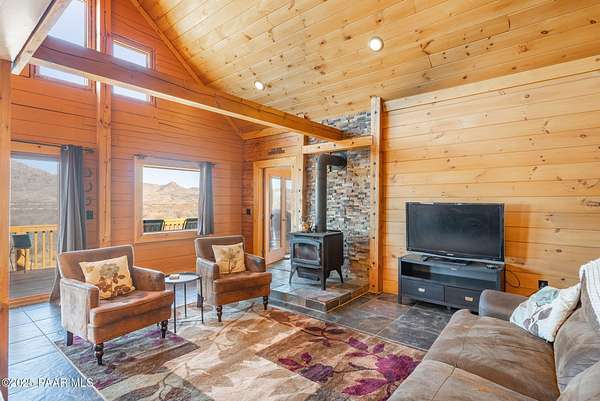 Iron Springs Road to Kirkland. Right at the 3 way stop onto Kirkland Hillside Road. Go 1.5 Miles & turn left into Ruger Meadows (single six rd) go approximately 1/4 mile, then turn left on W Founders Tr and go to the gate. Once through the gate continue for another 2-3 miles, then turn Right on Fipsila Circle to home on the right with the sign by the road. Must request appt for gate code!