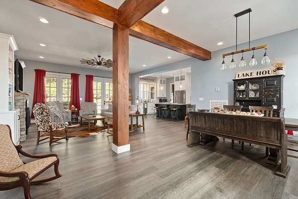 Elegant Custom Build Loaded with High-End Features! This exquisite custom home blends luxurious design, premium materials, and exceptional craftsmanship throughout. The chef's kitchen features all stainless JennAir appliances except the 30" Viking French door double wall oven, complemented by a 36" Jennair LP cooktop with four burners and a stainless griddle. The French door refrigerator includes interior water and an ice maker in the freezer, while the dishwasher offers a stainless interior, third rack, and bottle wash feature. A separate ice maker adds convenience. Custom cabinetry from K&M Cabinets of Lebanon includes soft-close drawers and doors, quartz countertops, and undermount sinks throughout. The kitchen showcases a Fireclay apron-front sink, the laundry includes a deep stainless sink, and the bonus room bar features a stainless bar sink with custom wood countertops. Bathrooms feature high-end finishes including a primary bath with a fully tiled steam shower, bench seat, rain head, handheld, and grab bar, dual vanities with makeup counter, and a 66" freestanding acrylic tub with matching faucet and handheld. Second bath offers a deep soaking tub with tile walls, handheld faucet, double vanities, half bath stands out with a custom vanity made from a Singer sewing machine base, vessel sink, and wall-mounted faucet. Toilets are American Standard elongated tall-height with soft-close easy-clean seats. Additional features include a tankless propane water heater, a gas fireplace with remote and switch, and custom wood and glass doors for the pantry and laundry room. Ceiling fans include a Quorum 60" windmill fan in the living room and Minka Aire 52" fans in all bedrooms and the bonus room. Elegant Delaney door hardware with glass knobs is found throughout, with keyless entry on the garage door. The home also offers a large, well-lit walk-in crawlspace you can stand in and an RV electrical hookup beside the garage. Every detail showcases design and Quality.
