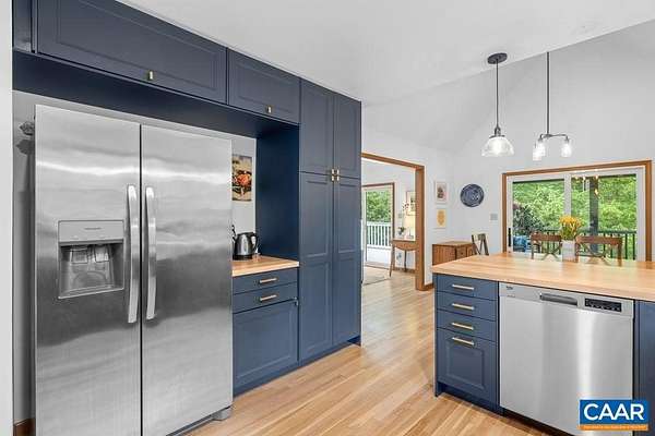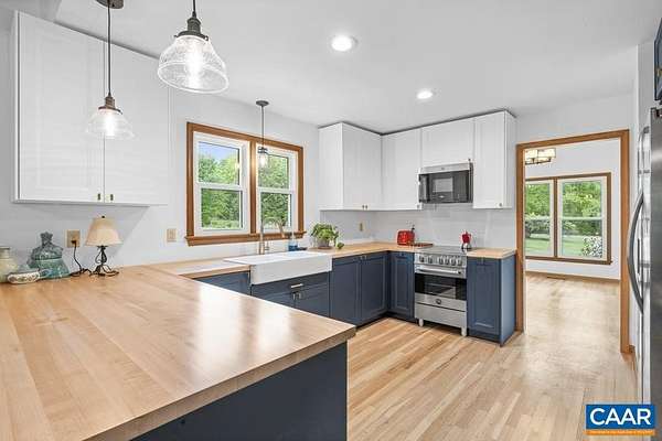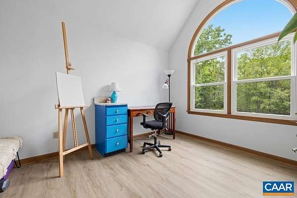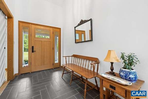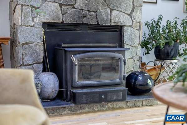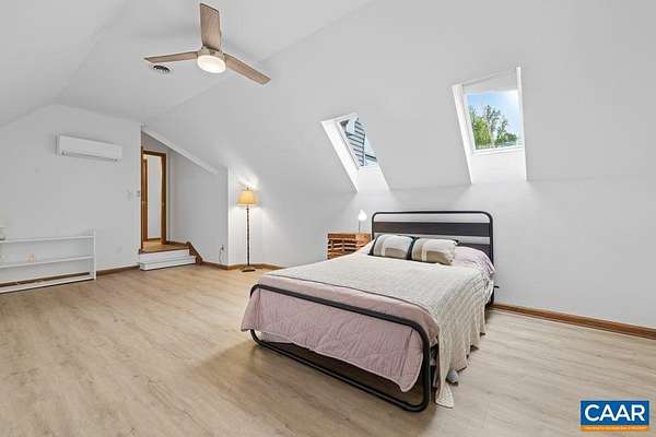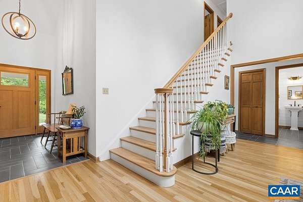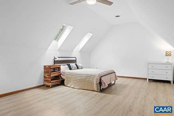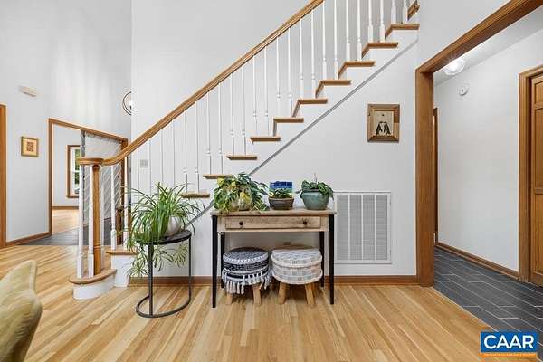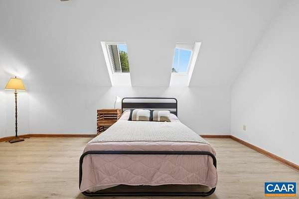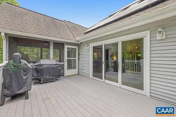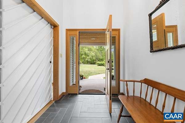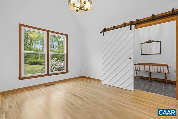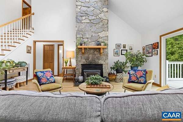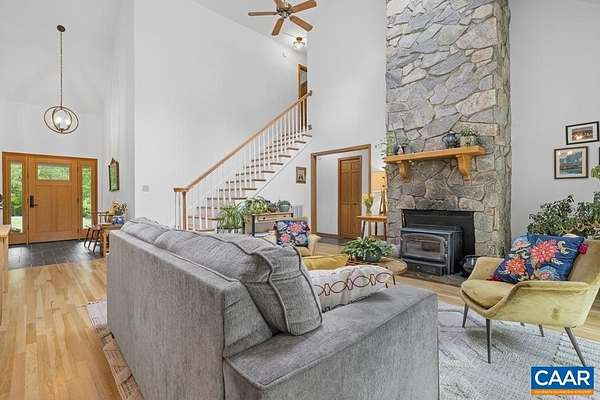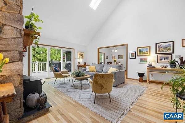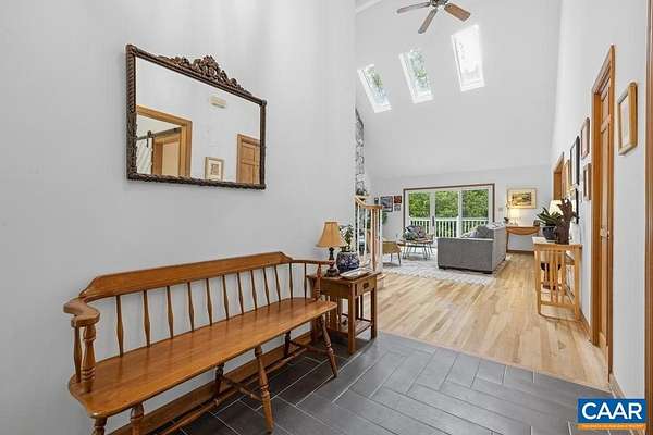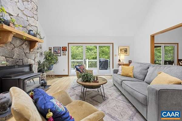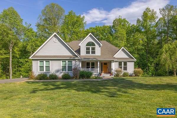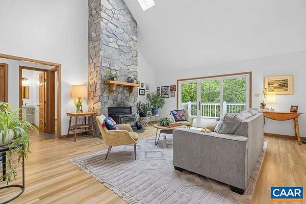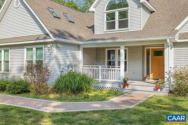 Dream Country Property! Gorgeous & Totally Updated Main-Level Living! Everything you’ve been dreaming of—solar panels, garden space, screened porch, covered front porch & privacy on 5 acres. Relax in the living room w/a stunning floor-to-ceiling stone fireplace, wood stove, skylights, vaulted ceiling, hardwood floors & new slider to a large back deck. Remodeled kitchen features new cabinetry, counters, SS apps, breakfast bar, updated lighting & eat-in dining. New windows/doors/fixtures, whole house generator, tankless water heater, plug-in car charger, extra 100 amp panel. Large true foyer w/ slate floors & high ceilings welcomes you & barn doors lead to a main-level office or dining room. Primary suite is fully remodeled with vaulted ceilings, LVP floors, walk-in closet, new double vanity, new soaking tub, and new separate shower. Large main-level laundry near primary & garage. Heating/cooling in the garage for year round convenience. Flexible second main-level bedroom or den. Upstairs includes 2 bedrooms, full bath, and oversized bonus room with separate mini split. 2 zone HVAC & 2 mini splits. Enjoy sheds, chicken coop, grassy spaces & wooded privacy. Close proximity to the Town of Palmyra, Zion Crossroads, Cville & Richmond.
