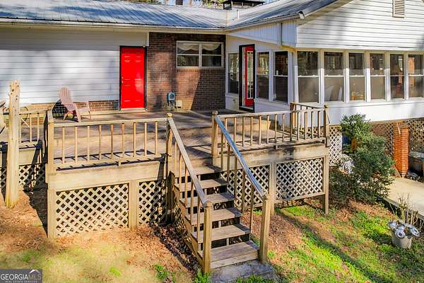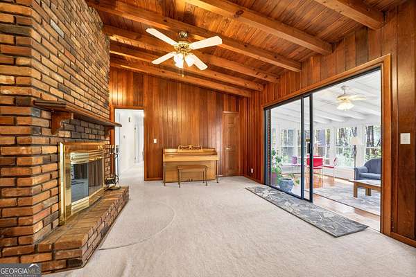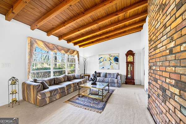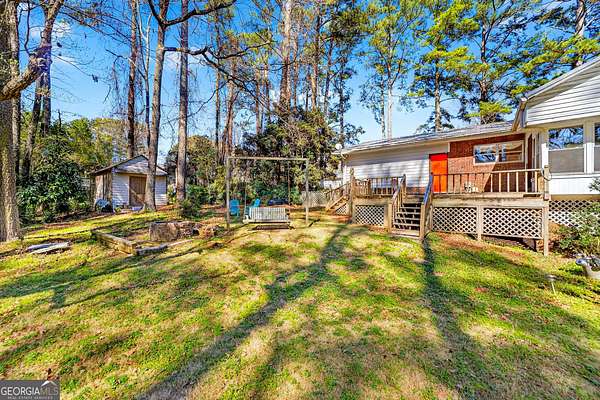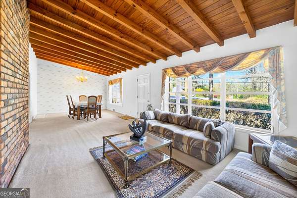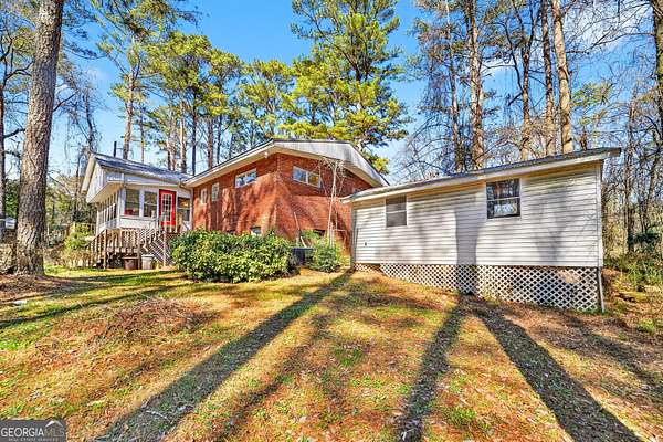 Location! Brick ranch with basement on a 6 Acre Private wooded Lot with waterfall creek nestled right outside the perimeter just north-east of Atlanta. This well maintained 1957 brick ranch delivers authentic character you can't recreate. Rich wood-beamed ceilings run throughout, bringing depth and texture to the main living spaces, anchored by a true brick fireplace that makes a statement the second you walk in. The dining area flows effortlessly into the living room, creating an open, inviting space perfect for gathering. Just beyond, a sun-drenched enclosed porch steals the show-walls of windows, natural light pouring in, and peaceful views of the surrounding trees. The kitchen keeps that classic charm with solid wood cabinetry, generous storage, gas cooktop cooking, and a layout that connects seamlessly to the living area-ready to enjoy as-is or elevate to your vision. Every room carries that mid-century authenticity-clean lines, quality construction, and a warmth that feels like home the moment you step inside. This is timeless design, real character, and a vibe you simply can't build anymore. Downstairs, a full basement gives you serious flexibility-storage, partial finished climate-controlled area including bonus room that could be a bedroom, full bath, laundry room, and entertainment area with fireplace. Step outside and it levels up: Pool, deck, firepit, swing, peaceful, secluded, private and rare 6 acres so close to the city. Add in an outbuilding with power and detached 2 car garage, barn, shed, and now you've got space for hobbies, business, equipment, or a full lifestyle setup. This is not just a home-it's land, legacy, and opportunity wrapped in classic design. LOCATION: Enjoy peaceful suburban living with excellent access to I-85, Highway 78, 285, and Jimmy Carter Boulevard, making commutes to downtown Atlanta, entertainment, and shopping a breeze. Outdoor enthusiasts will love being just minutes from Stone Mountain Park and Gwinnett County parks, including Harmony Grove Park. Experience the perfect blend of comfort, convenience, and community in this exceptional Lilburn residence. Note : Home is being sold AS IS