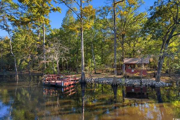 Hidden off the beaten path on the deep waters of the Waccamaw River, this private, gated 3-bedroom, 2-bath home sits on 5.6 serene acres---a true Lowcountry fishing and hunting paradise. From the moment you arrive, you'll feel a world away, surrounded by mature landscaping and a hand-cleared natural area leading to your own 700+ foot pier walkway and 270 feet of pristine riverfront. Whether you're casting a line at sunrise, launching your boat from the floating dock, or gathering under the tiki hut and gazebo for a cookout, this is the kind of place where memories are made. The home itself is low-maintenance, open, and airy---completely move-in ready with no HOA fees. Inside, you'll find a spacious master suite with a large walk-in closet and a private bath featuring a double vanity, walk-in shower, and a relaxing garden soaking tub. The kitchen offers plenty of cabinet and counter space plus a roomy pantry, while ceiling fans throughout keep the air fresh and energy bills low. Step out onto the oversized side deck and enjoy the best of both worlds, a beautiful yard with privacy, and access to the river with spectacular views! This is more than just a home, it's a family retreat designed for generations to enjoy, where weekends stretch long, and the simple pleasures of nature take center stage!