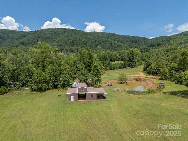 18.087 acres of beautiful land featuring a pond and a 36x30 three-stall barn with an shady overhang for farm animals. The property includes a spacious 2,832 sq ft workshop, which is a mechanic's dream, featuring two lifts, cabinets, and five bays. There are six full-service RV hookups with septic, water and electricity. Consider opening an income-producing RV park! The two-bedroom, two-bath cabin (with heated bedroom upstairs, not included in SF) boasts a rock fireplace, galley kitchen, dining room, and expansive wraparound deck to enjoy the stunning surroundings. All furniture included at no value! Additionally, there's a 183 sq ft shed that has been transformed into a one-room cabin with a bathroom and air conditioning, overlooking the pond and an outdoor kitchen. A nice flowing stream runs through the property. The possibilities are endless! Multiple building sites with MOUNTAIN VIEWS!! Trails throughout property!