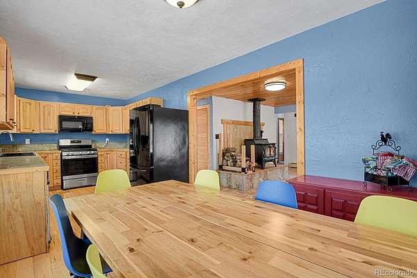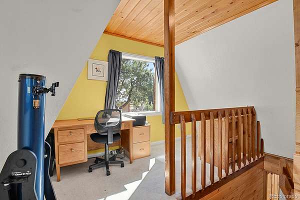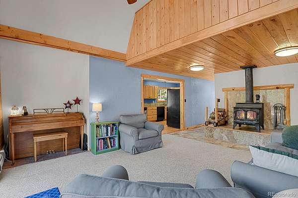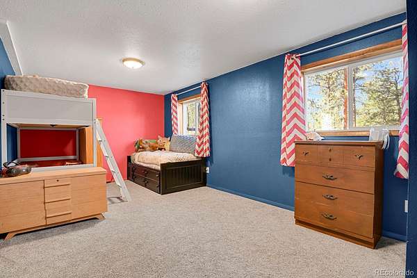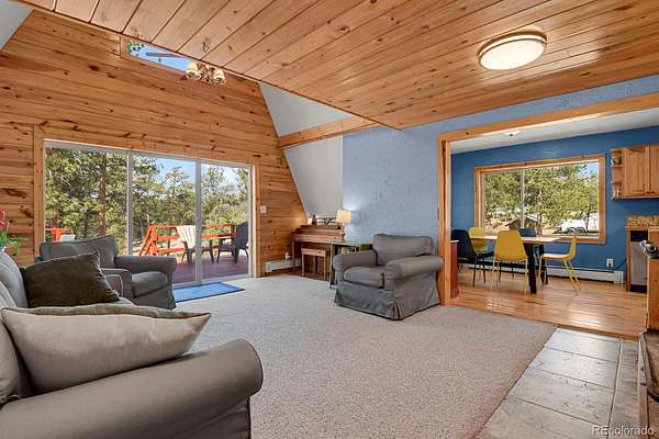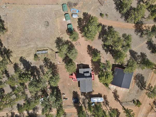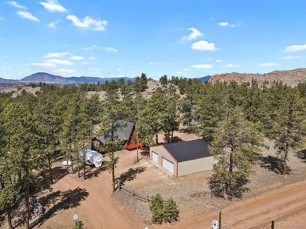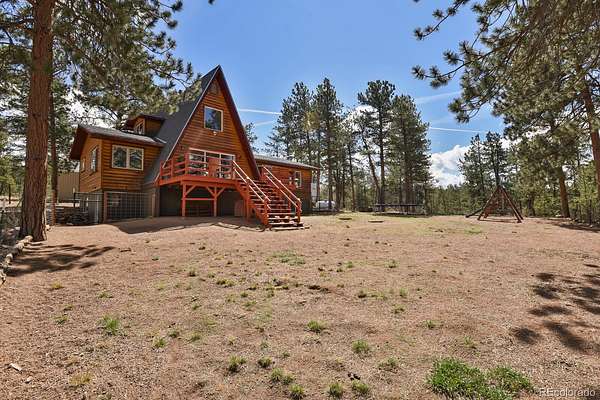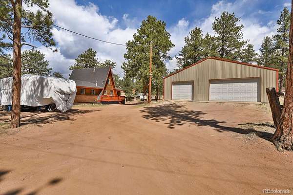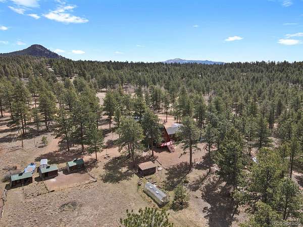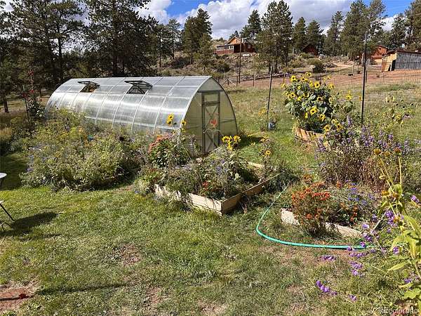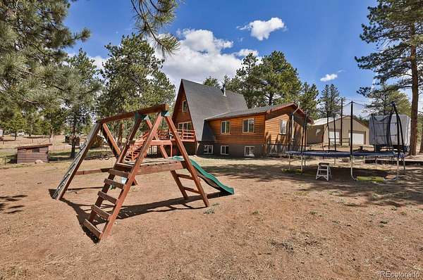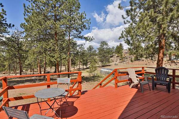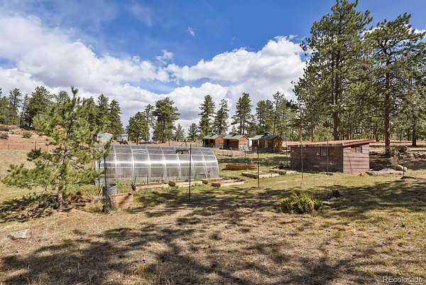 Mountain chalet-style home set on nearly 6 usable, level acres in a peaceful, quiet setting—fenced for horses and livestock. This property blends rustic character with thoughtful updates and functionality. Inside you’ll find beetle-kill pine accents, tongue-and-groove ceilings and walls, and a warm, inviting living space with a wood-burning stove and tile hearth. The kitchen features stainless steel appliances and granite tile countertops, along with a spacious dining area that flows seamlessly from the kitchen. The cozy A-frame loft bedroom provides flexible space for a home office, crafts, or a reading nook. The lower level includes a spacious family room with new carpet throughout, a gas furnace, and ¾ bath with heated flooring. Updates to most of the bathrooms add comfort and style. Additional improvements include updated windows, a radon mitigation system, newer well pump, and water softening system. Outdoor features make this property stand out: a 40x40 detached insulated garage/shop, bountiful greenhouse, multiple log-sided barn sheds (including a chicken coop setup), storage shed, A-frame playhouse, and fort. Custom rock-climbing walls in the garage and on the property offer a fun and unique feature. Freshly painted front decking adds curb appeal. From the back door and deck, a fenced area overlooks a secure space for dogs and kids, while beyond that, approximately 3 acres are separately fenced with smooth wire—ideal for horses. The well permit allows for non-commercial domestic animal use. The land offers a mix of meadow and trees, with plenty of space for animals, gardening, and enjoying the quiet setting—truly a homesteader’s haven. Located less than a mile from Pike National Forest access and near local rock climbing, the South Platte River’s gold medal fishing, and Lake George amenities including the Gymkhana Arena. Easy access to Woodland Park (30 minutes).
