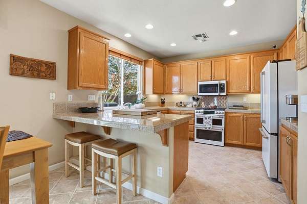 Welcome to this stunning, original owner home set on one of the largest and most private ¼-acre corner lots in the highly sought-after Hidden Lake community. Backing directly to Joseph Tioga Park, this exceptional property offers breathtaking Sierra Nevada, lake, and city views. Thoughtfully upgraded and truly move-in ready. Inside, enjoy custom hardwood and tile flooring, a beautifully designed California Closets office and primary suite, and a spa-inspired bath with Avonite countertops and a Kohler shower. The chefs kitchen is equipped with premium GE Café appliances, including a 6-burner gas range with convection and pizza oven, while a cozy gas fireplace adds warmth and charm. The outdoor spaces are just as impressive, showcasing Rhino Shield ceramic exterior coating, a slate tile front porch, new fencing, and professionally landscaped front and rear yards complete with a custom arbor and Jacuzzi spa. Additional highlights include upgraded security windows, a 3-car tandem garage with overhead storage, and access to resort-style amenities including a clubhouse, pool, and tennis/pickleball courts. A rare combination of luxury, privacy, and location this is a home you don't want to miss.