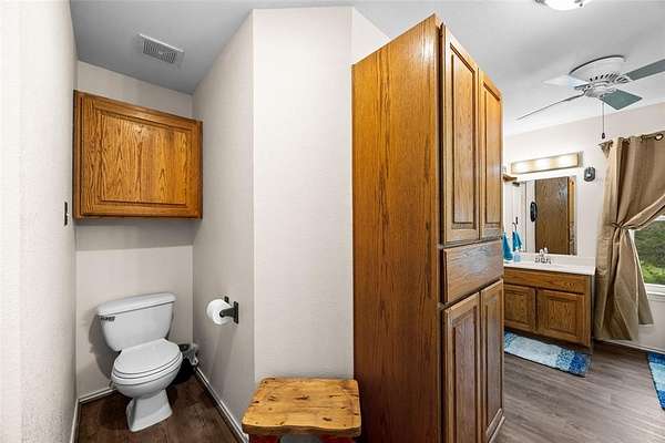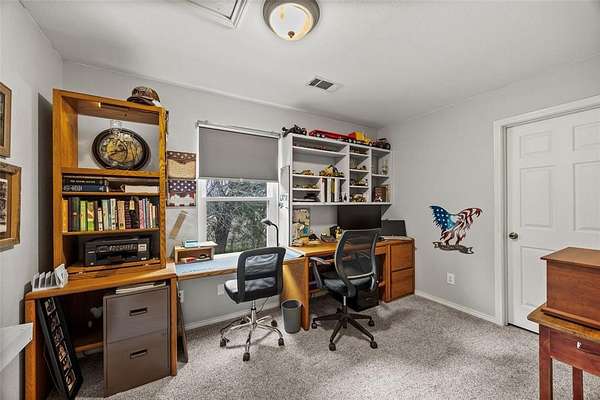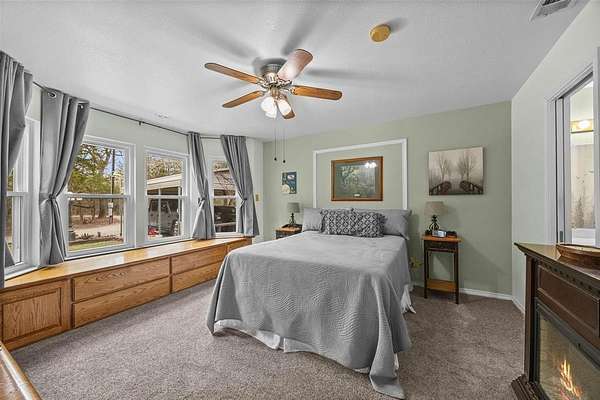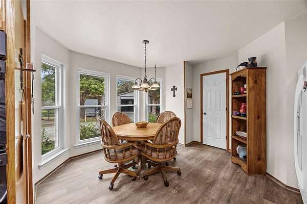 Tucked among mature trees at the end of a winding drive, this private country property offers all the benefits of country living just minutes from Downtown Van Alstyne! The home features two primary suites — one downstairs and one upstairs — providing flexible living arrangements ideal for multi-generational households. Inside, the warm and inviting living room showcases vaulted ceilings, beautiful wood paneling, and a fireplace centerpiece that creates a cozy gathering space. The kitchen is both practical and timeless, featuring solid oak cabinetry, double ovens, updated appliances, and exceptional storage including three separate pantries. Throughout the home you’ll find new windows that bring in abundant natural light, comfortable living spaces, and updated carpeting. Storage is a standout feature, including multiple closets and built-ins, along with a large laundry room with custom storage. Outdoor living is just as inviting. Enjoy mornings on the covered front porch and relax in the evenings on the spacious back porch overlooking the yard and garden area. The property also features a ready-to-go garden space with irrigation, perfect for homesteading. For those needing additional workspace or storage, the property includes a 3-car garage, a separate workshop, and additional storage sheds.