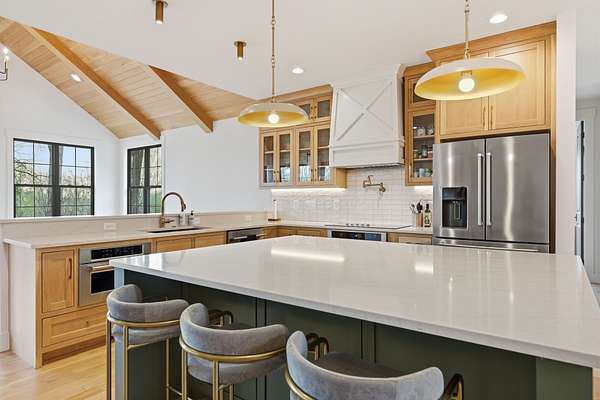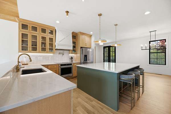 - Built-In Electric Oven, Cooktop, Dishwasher, Disposal, Microwave, Refrigerator, Stainless Steel Appliance(s)