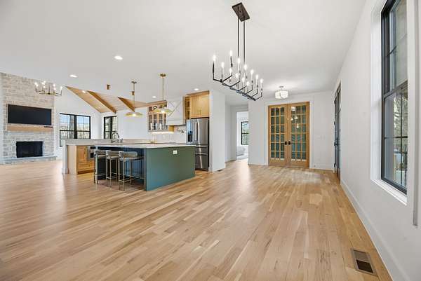 Inside, you’ll find a thoughtfully designed open floor plan with quality finishes throughout, creating a warm and inviting atmosphere ideal for both everyday living and entertaining. The primary suite on the main level provides a private retreat, while additional spaces offer flexibility for family or guests.