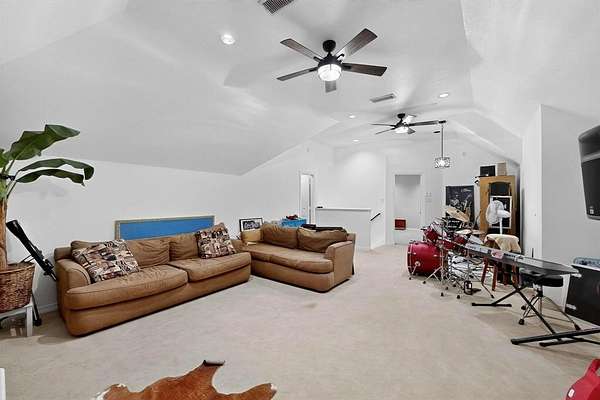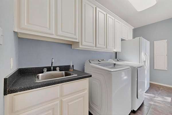 The main residence welcomes you with an open floor plan, soaring ceilings, and abundant natural light. Oversized kitchen highlights the home, complemented by multiple ensuite bedrooms, a versatile upstairs game or media room, and an additional guest suite with half bath--perfect for extended family or home office use. Recent updates include new roof, windows, gutters, and pool equipment, ensuring turnkey comfort and peace of mind.