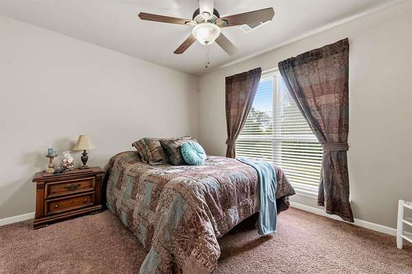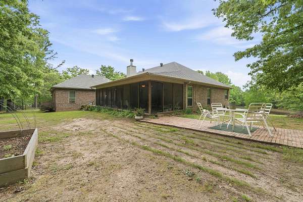 Builder's custom built personal home on 17 acres. Discover the perfect blend of privacy and potential. this wonderful property offers space to spread out and enjoy true country living. This 3-bedroom, 2-bath home features 2,206 square feet of comfortable living space, a double garage equipped with an automatic opener. Inside, you’ll find a spacious layout highlighted by a cozy gas log fireplace—perfect for relaxing evenings at home. One of the standout features is the impressive 35' x 12' screened porch, ideal for enjoying peaceful views of the property, entertaining guests, or simply unwinding while taking in the outdoors. Step outside and take in the scenic setting, complete with a pond—perfect for relaxing or enjoying nature. The property also includes a small abandoned house with a double carport that offers incredible potential. With a little vision, it could easily be transformed into a workshop, storage space, or hobby area with a large covered work area. A storm shelter is included & an RV electric hookup is beside the house. 3 year old roof, 2X6 walls, 3.0 doors. The curtains do not convey. Most furniture is for sale. Refrigerator, washer & dryer are negotiable.