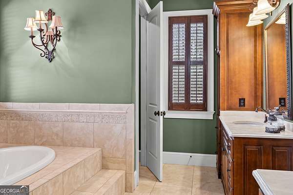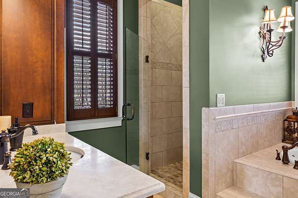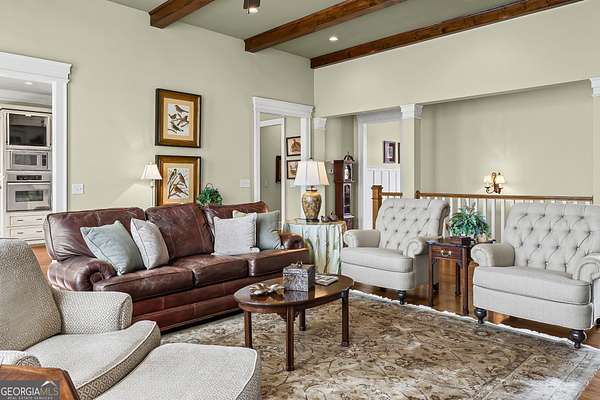 - Beamed Ceilings, Bookcases, Double Vanity, High Ceilings, In-Law Floorplan, Master On Main Level, Separate Shower, Tile Bath, Walk-In Closet(s)