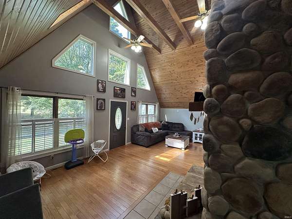 CAN YOU SAY COUNTRY CABIN? THIS LOVELY PROPERTY SETS JUST SECONDS FROM PATOKA LAKE IN A VERY PRIVATE LOCATION. FEATURING 2 BEDROOMS, 3 FULL BATHROOMS, FULL WALKOUT BASEMENT, 2 CAR ATTACHED GARAGE, STONE FIREPLACE, FORMAL DINING AREA, WRAP AROUND PORCHES, LARGE POLE BARN WITH WORKSHOP AND UTILITIES, AND SO MUCH MORE. DID WE MENTION THAT THIS BEAUTIFUL HOME IS TUCKED AWAY ON OVER 4.18 PARTIALLY WOODED ACRES? THIS HOME OFFERS PLENTY OF ROOM FOR EXPANSION. ENJOY THE COVERED REAR DECK OF THIS HOME AND ENTERTAIN GUESTS ON THOSE BARBECUE DAYS. LOOP AROUND DRIVEWAY PROVIDES EASY ACCESS TO BOTH THE RESIDENCE AND LARGE POLE BARN. ALL KITCHEN APPLIANCES AND ONE YEAR HSA HOME WARRANTY ARE INCLUDED.
